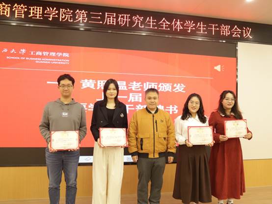 2023-11-24辞旧迎新/学院召开第三届研究生全体学生干部会议图:李少华文:高芷萱为对第二届研究生团学组织学生干部进行表彰,促进新一届研究生学生干部之间的交流,发挥学生干部的桥梁作用,更好地开展mg冰球官网研究生工作,11月13日晚上19时,mg冰球突破试玩召开第三届研究生全体学生干部会议。院团委书记马丽娟,团委副书记岑汉成,院党委组织员黄照温,学工组辅导员王乐、张艳红、郁文丹出席指导,第二届,第三届研究生团学组织学生干部、各班班长和团支书。会议共六项议程,会议伊... -