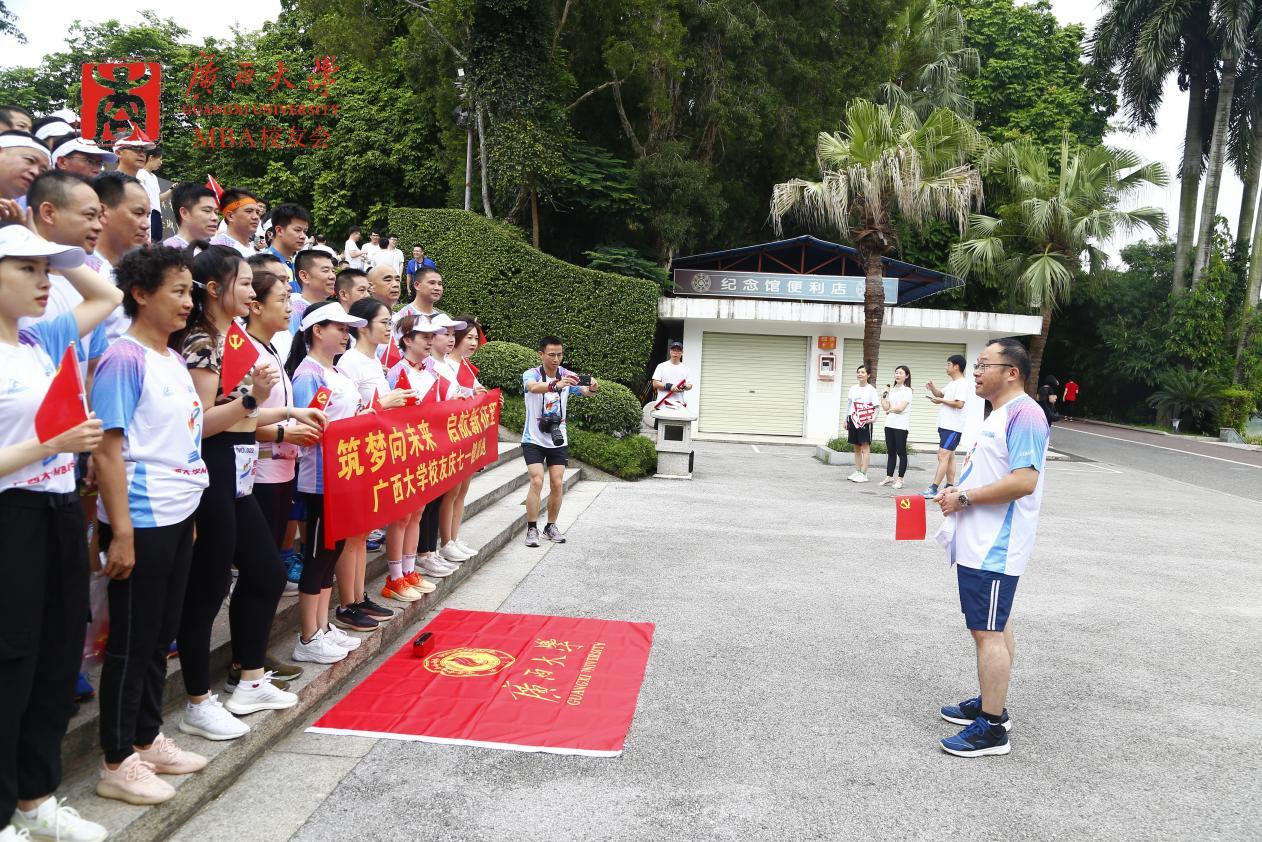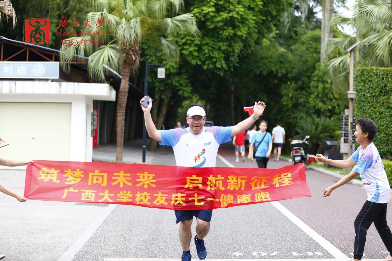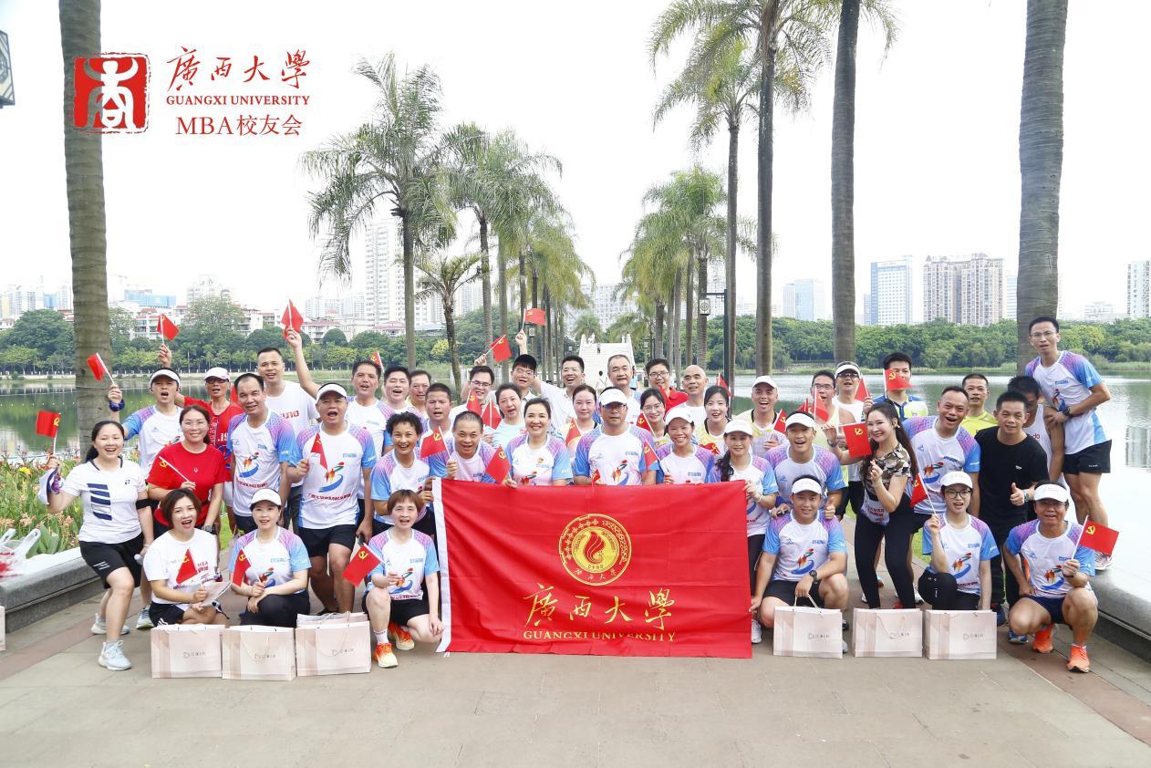 在中国共产党成立102周年之际,7月1日上午,学院党委书记罗诚与学院MBA、EMBA校友一起,在南宁市南湖公园参加了由mg冰球突破试玩区直校友会、mg冰球突破试玩南宁市校友会、mg冰球突破试玩EMBA同学会、mg冰球突破试玩MBA校友会、mg冰球突破试玩MBA联合会共同举办的主题为“筑梦向未来,启航新征程”的mg冰球突破试玩校友庆“七一”健康跑活动。近70名校友在全长8.1公里的环湖绿道上意气风发、奋勇向前,以这种特殊的方式庆祝中国共产党成立102周年。