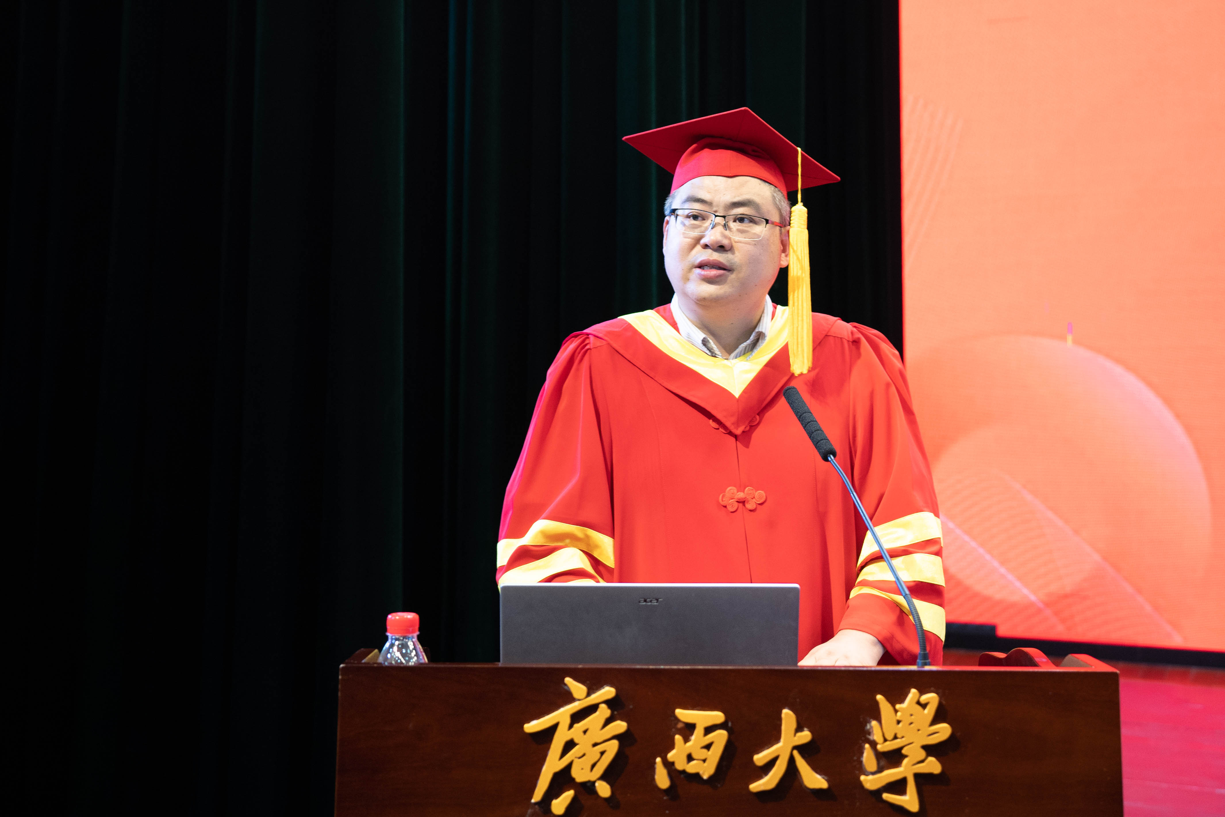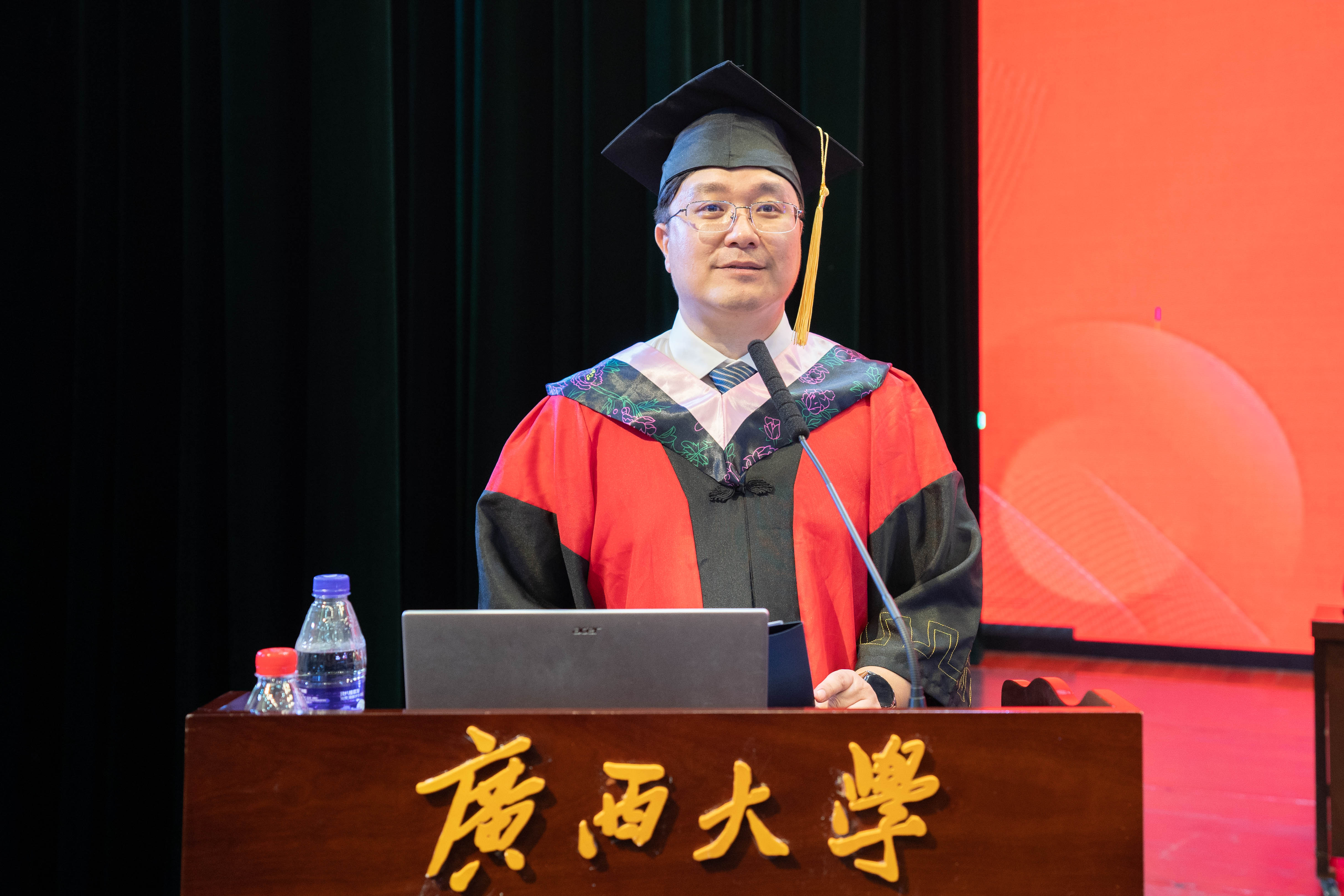 院长朱帮助在典礼上作了热情洋溢的讲话。他回顾了同学们取得的优异成绩,细数了大家在母校学习生活中的点点滴滴。在毕业生即将远行、踏上人生新征程之际,朱帮助院长勉励同学们要更加深刻地坚守强国之路,以创新创造形塑奋斗之我、强国之基。他希望同学们坚守心中的热爱,无论身处顺境还是逆境,永远不要放弃心中的热爱,以热爱激发灵感、点亮梦想;要保有梦想,创造无限可能,通过不断学习,打造自己的核心竞争力,创造新的闻所未闻、见所未见的无限可能;要保持坚守与创造的辩证统一,既要以坚守把稳舵盘、保持航向,又要以创造努力发展、扬帆远航,要坚守科学的理性和人文的关怀,又要立足本职岗位力争有所发现、有所创造,将智慧和汗水播撒在祖国需要的广袤天地间。