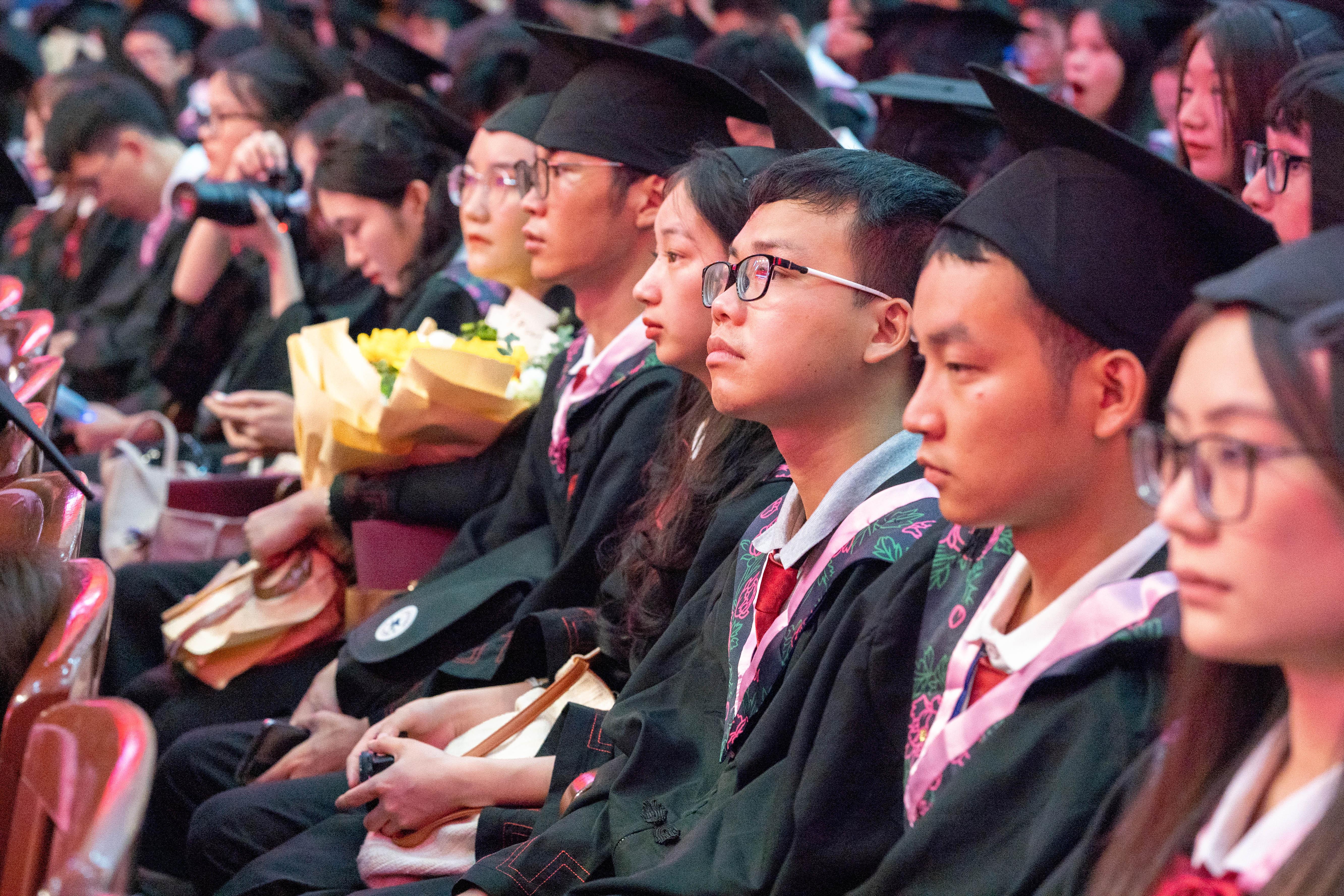 毕业生们认真聆听师长教诲