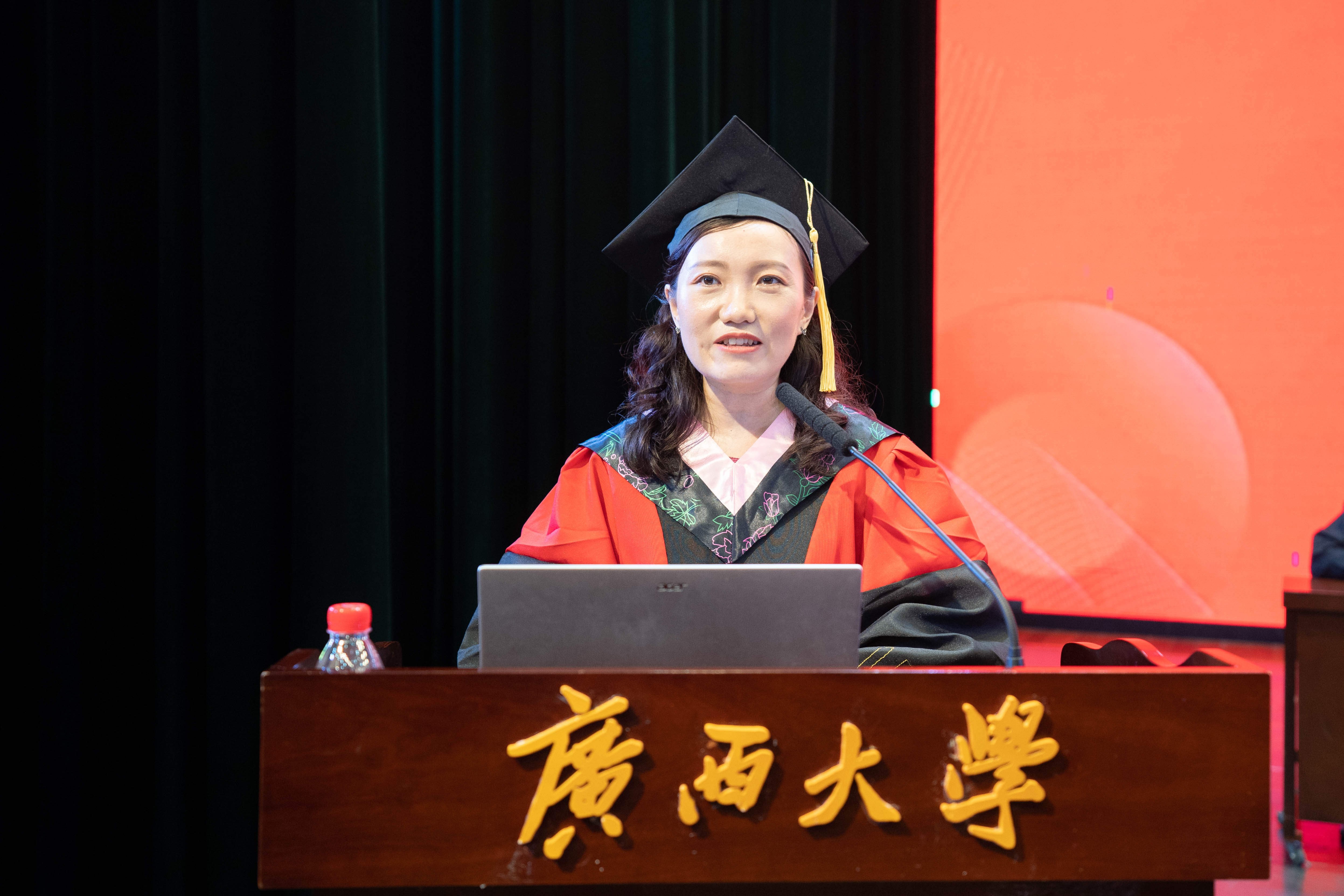 教师代表、企管系王玻副教授在发言中希望毕业生们能把准信念之舵,坚定踏浪前行的人生航向,要持续学习,不断充盈自己,不断创新,以不变应万变,锻造超强的适应能力。她表示,每一位老师和学院都将持续助力大家用更好的心态、更睿智的眼光、更准确的商科思维应对商海沉浮,助力大家成为真正有大智慧的人。