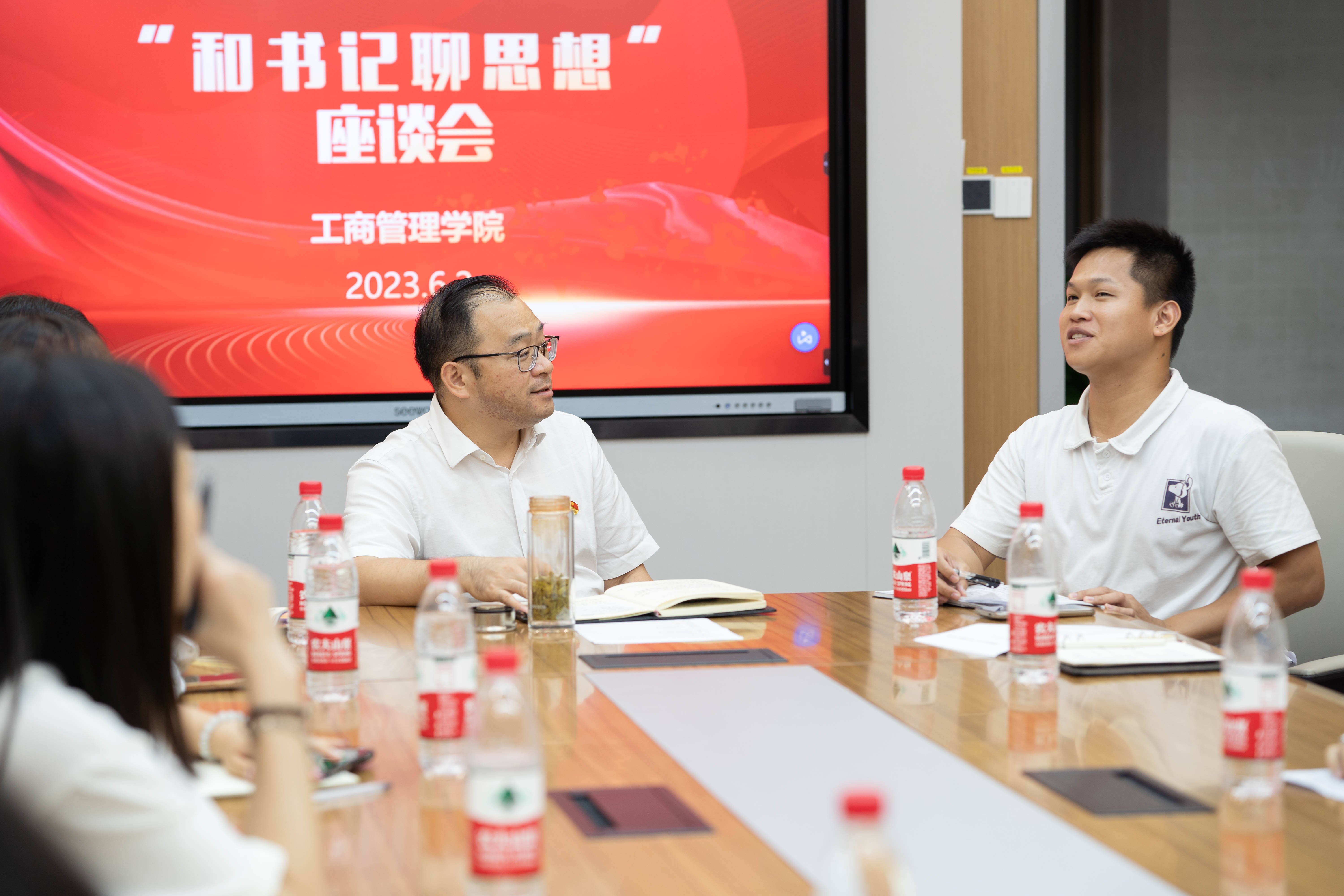 6月2日下午,mg冰球官网在231会议室举行“和书记聊思想”座谈会,学院党委书记罗诚与10名学生代表面对面倾心交谈,分享好书,交流成长。学院党委副书记黄晋,团委书记马丽娟、团委副书记岑汉成、组织员黄照温参与座谈。