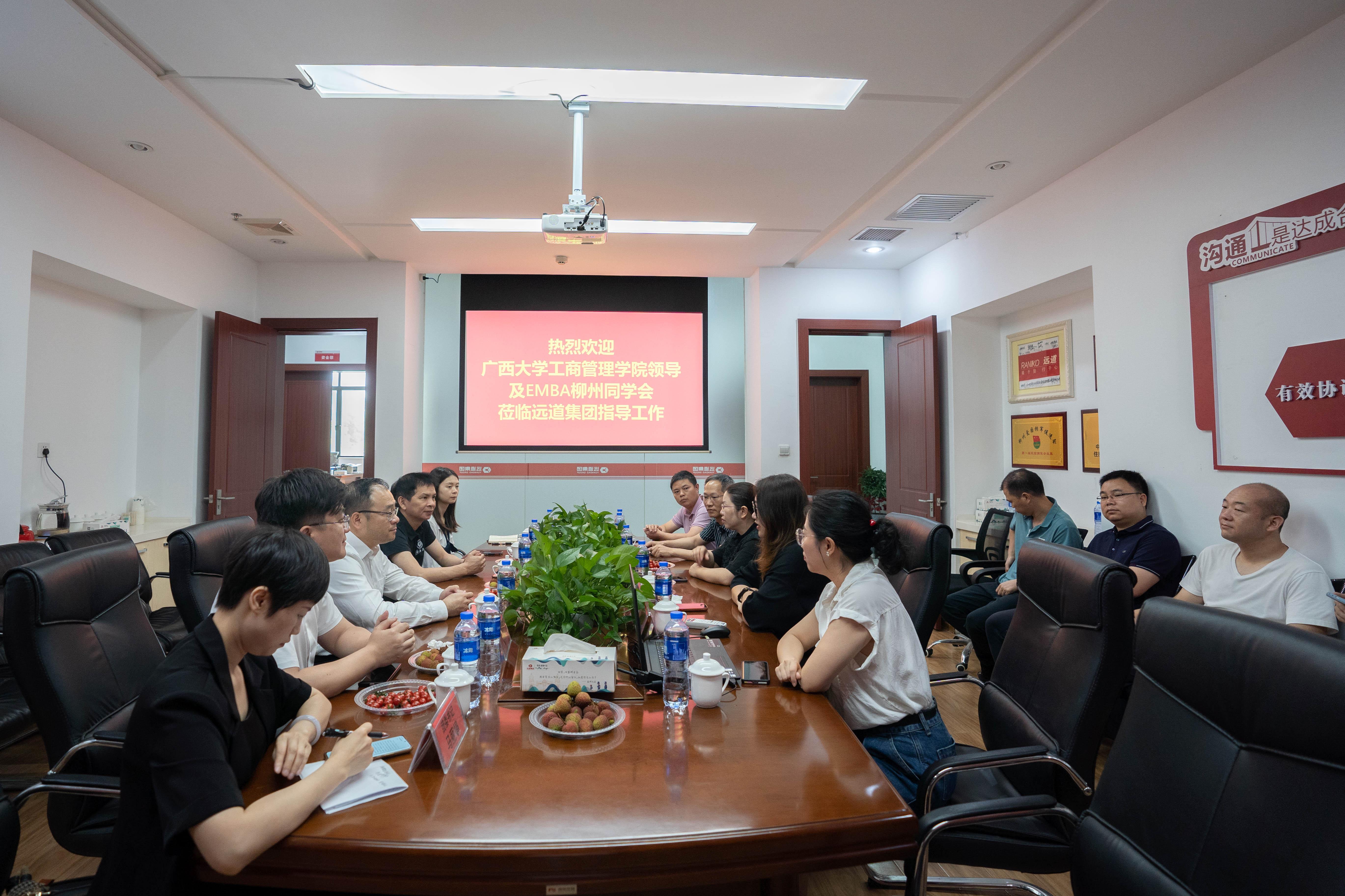 在广西远道投资集团,调研团参观了集团总部,并与该公司总裁、mg冰球官网EMBA10班校友吴薇等座谈交流。