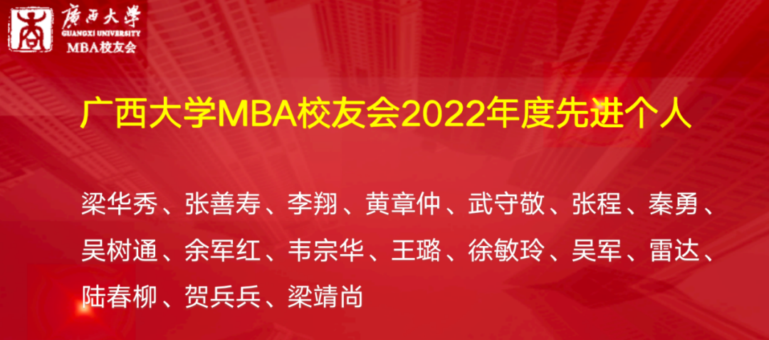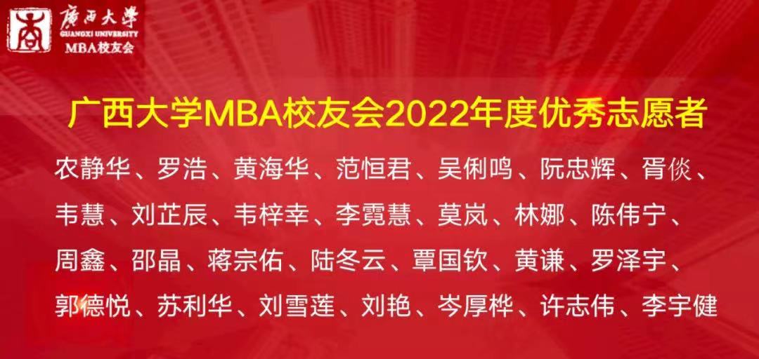 mg冰球突破试玩MBA校友会会长梁华秀作2022年工作总结,他表示,MBA校友会团队是“广西学历最高的志愿者服务团队”。校友会在2022年开展了系列丰富多彩的活动,包括各类走访交流活动、MBA校友沙龙、MBA校友共享茶室公益平台、MBA校友读书会、慈善公益活动以及形式多样的文体活动等。