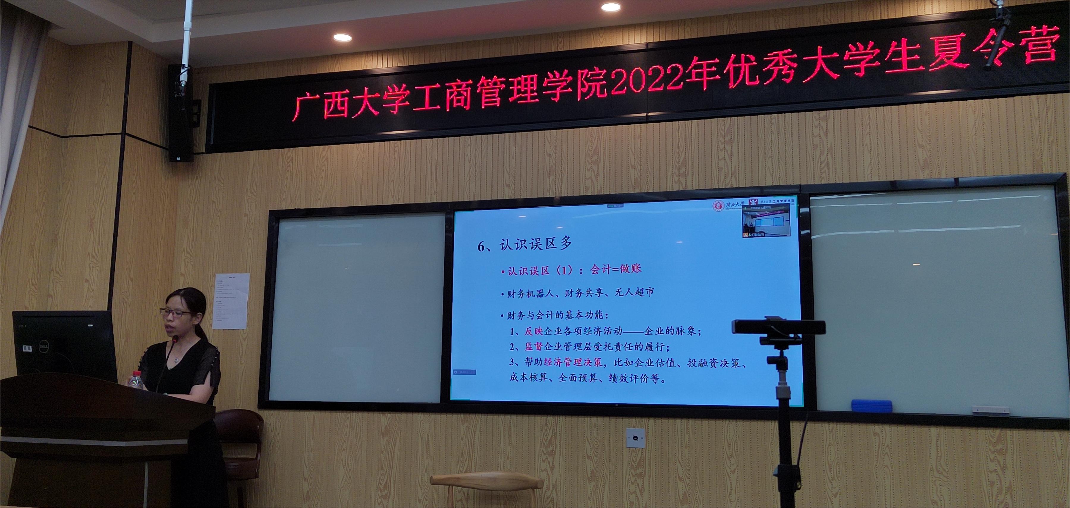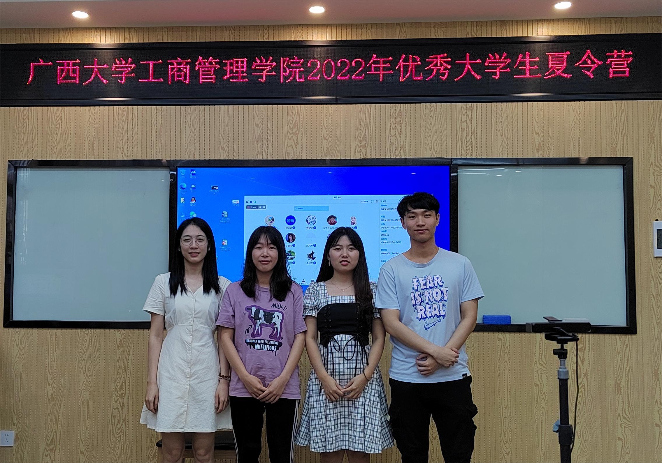 7月6日上午,研究生秘书邓素媛主持考研经验交流沙龙环节,mg冰球官网2021级韦梅婷、张舒源、韦欢欢、罗咏诗四位硕士研究生与营员们分享了自己的考研经历,并与营员们进行了深入的互动交流。下午,研管中心黄昱老师带领营员们观看学校宣传篇,开展知识抢答,并特邀张家伟(2020级博士)、李姝蓉(2020级硕士)2位优秀在读研究生及海晨颖(2018级)、山冬鲁(2019级)2位优秀校友分享自己研究生阶段学习经验。