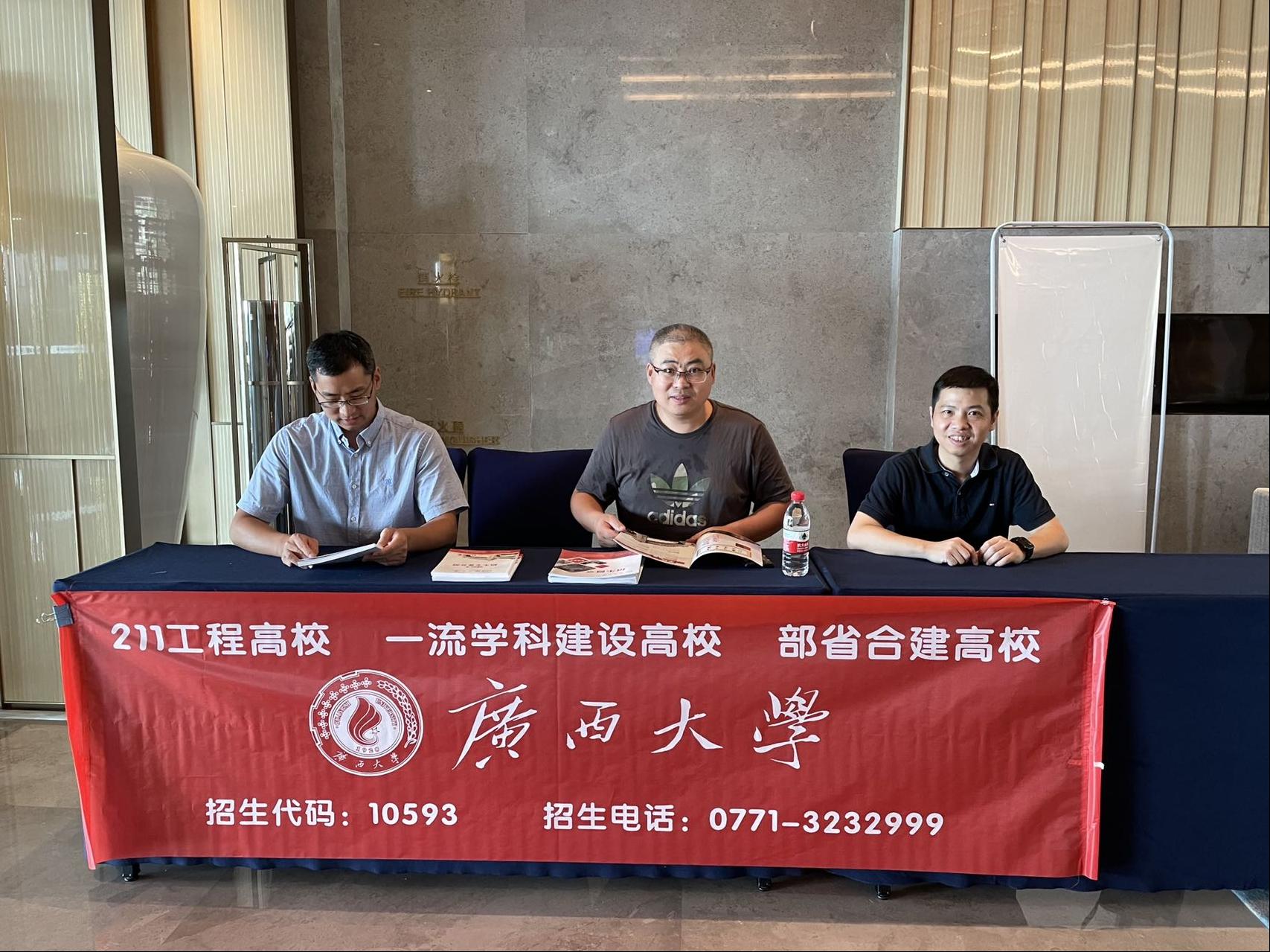 为了进一步提高本科生生源质量,扩大学校和学院知名度,吸引优质生源,mg冰球官网领导带队,携各系主任、本科教学办工作人员、骨干教师等兵分三路,奔赴百色、江苏、浙江等地代表学校开展2022年本科生招生宣传工作。