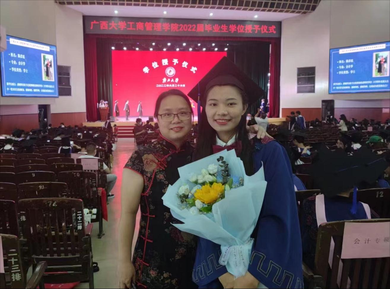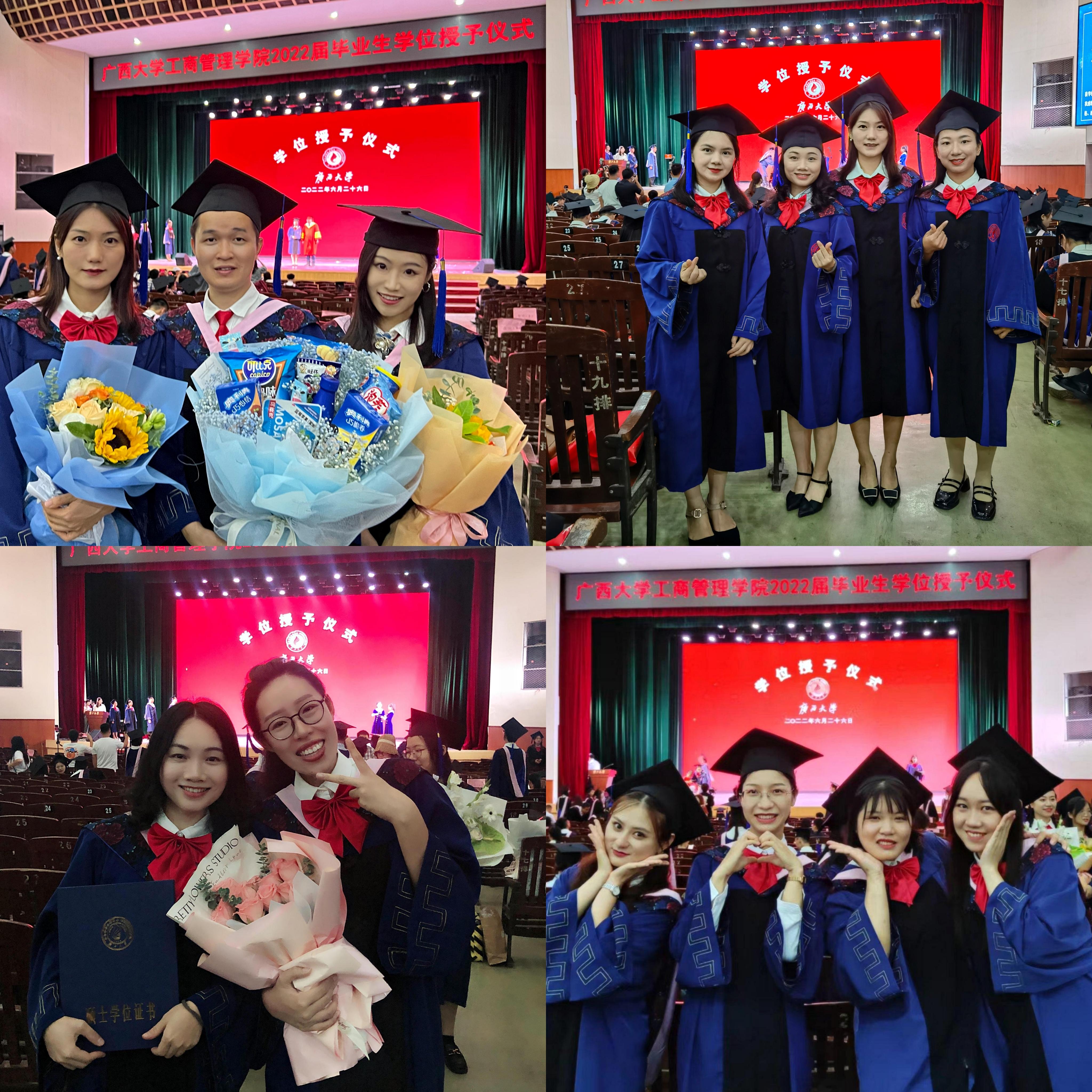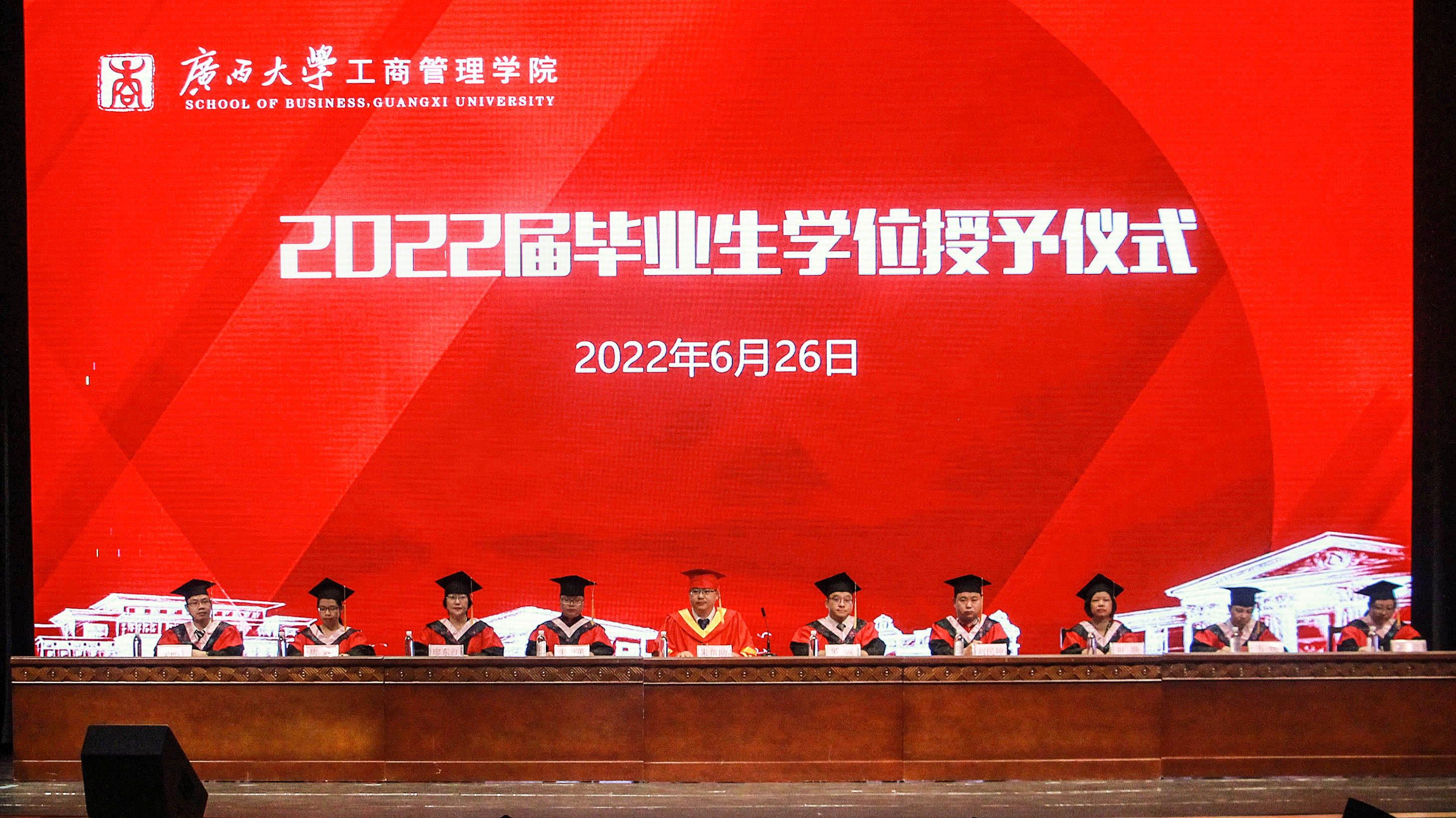2022年6月26日,mg冰球突破试玩在学校大礼堂为2022届755人毕业生(其中研究生485人,本科生270人)举行庄严而隆重的毕业典礼暨学位授予仪式。院党委书记罗诚,院长朱帮助,院党委副书记黄晋,副院长朱少英、刘民坤、廖东红,教师代表叶映、韦铁、郭峦、唐妤、梁世昌出席仪式。仪式由院党委副书记黄晋主持。
