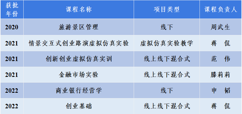 2022年6月10日,广西教育厅发布《自治区教育厅关于公布第三批自治区级一流本科课程名单的通知》(桂教高教〔2022〕30号),mg冰球官网申韬教授负责的《商业银行经营学》、蒋侃教授负责的《创业基础》两门课程获批第三批自治区级一流本科课程。截至目前,mg冰球官网共获得自治区级一流本科课程6门。
