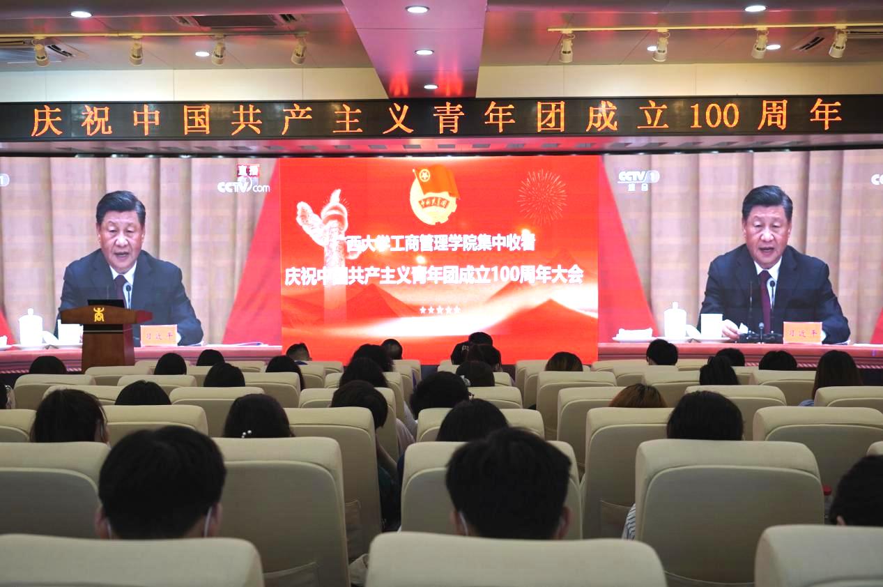 2022年5月10日上午,庆祝中国共产主义青年团成立100周年大会在北京人民大会堂隆重举行,中共中央总书记、国家主席、中央军委主席习近平出席会议并发表重要讲话。mg冰球官网团委组织团员青年、青年团干、学生干部代表集中收看了本次大会实时直播,各班团支部组织团员青年在宿舍收看了大会的实时直播,深入学习贯彻习近平总书记重要讲话精神,积极发表心得体会,共同庆祝中国共产主义青年团成立100周年。