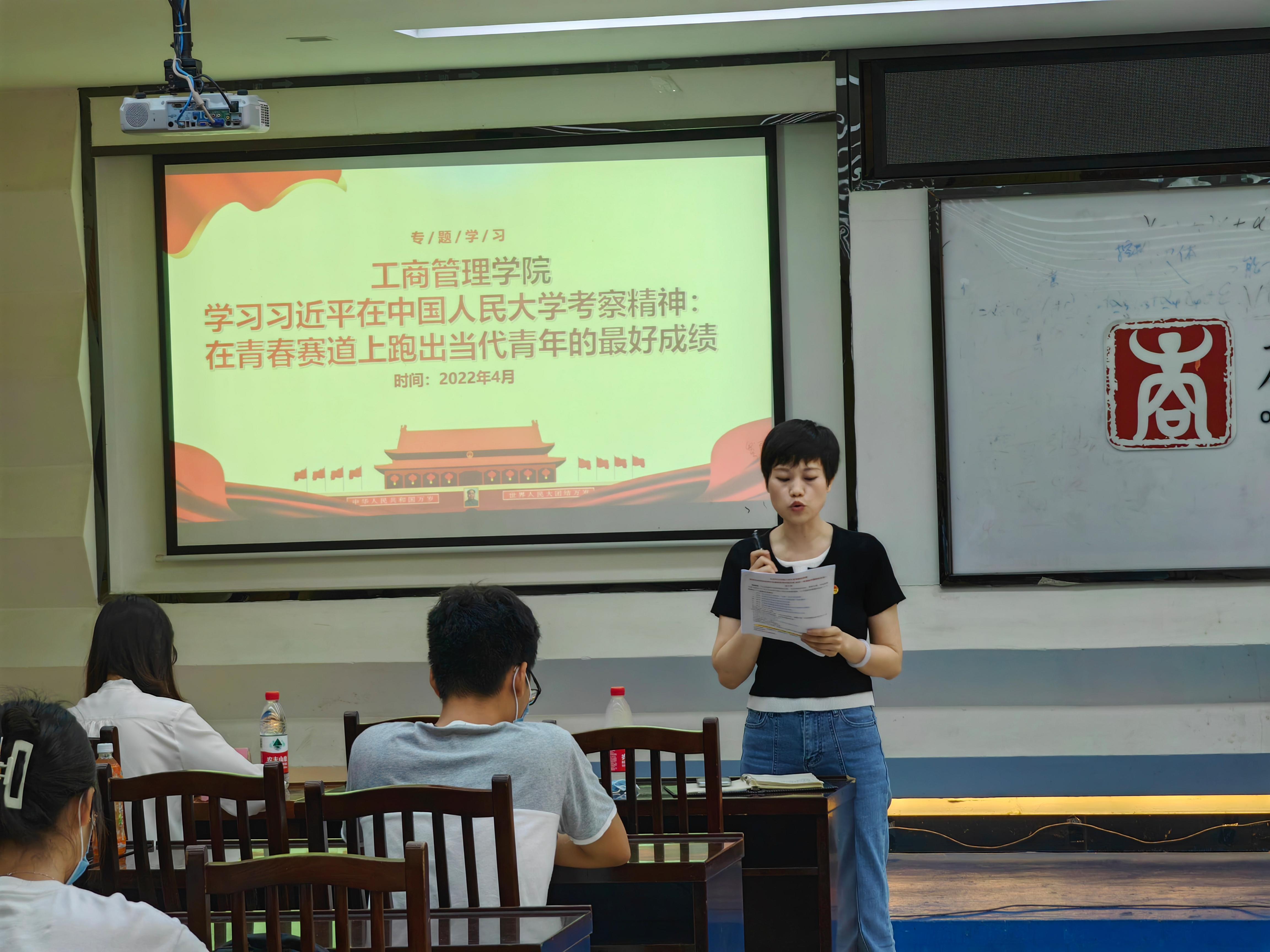 2022年4月25日上午,习近平总书记在中国人民大学考察调研并发表重要讲话。习近平总书记希望全国广大青年牢记党的教诲,励志民族复兴,不负韶华、不负时代、不负人民,在青春的赛道上奋力奔跑,争取跑出当代青年的最好成绩。讲话发表后,mg冰球官网立即组织传达、学习、贯彻落实习近平总书记重要讲话精神,全院师生积极交流讨论,反响热烈。