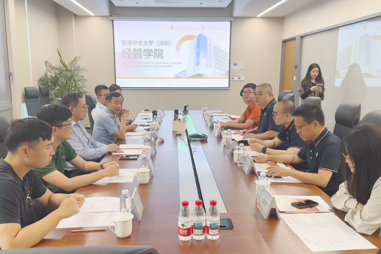 3月28日下午,mg冰球官网院长朱帮助率会计与财务金融系教师代表一行7人赴香港中文大学(深圳)经管学院(以下简称港中深经管学院)调研。港中深经管学院副院长艾春荣及学院相关领域教授、行政负责人参与座谈。