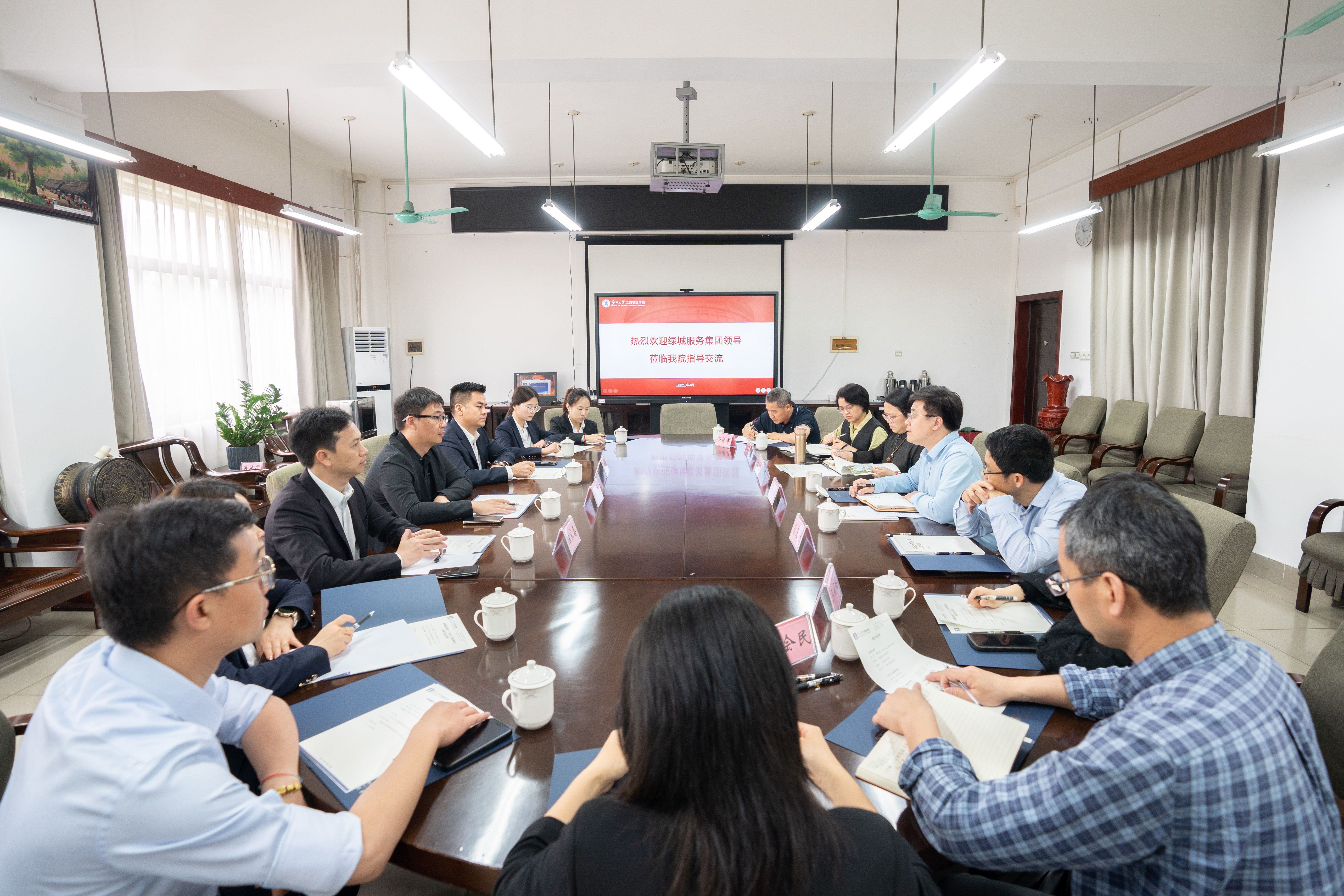 4月9日下午,绿城服务集团助理总裁、首席本体官、高校专班组长曲亮一行到mg冰球官网调研交流。学院党委书记黄晋,党委副书记肖克宁、副院长朱少英与来宾在420会议室座谈。