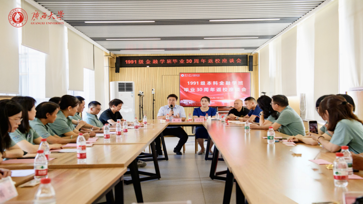7月5日,仲夏的绿城南宁草木葱茏,mg冰球突破试玩校园内欢声笑语不断,洋溢着久别重逢的喜悦。mg冰球突破试玩以“勤朴数载 厚学致远”为主题,精心组织秩年校友返校活动,邀请阔别母校十载、廿载、卅载的校友重返校园。近50位来自不同年级、班级的工商学子从各地汇聚西大,共叙同窗情、畅谈学院发展。学院党委书记黄晋,副院长朱少英,经济学院党委副书记刘梦娟出席座谈会,与返校校友们亲切交流。校友工作与政企服务办公室主任覃朝勇、MBA教育中心主任叶映、学院专职组织员黄照温,金融91级本科班主任黄绥彪等参加座谈会。