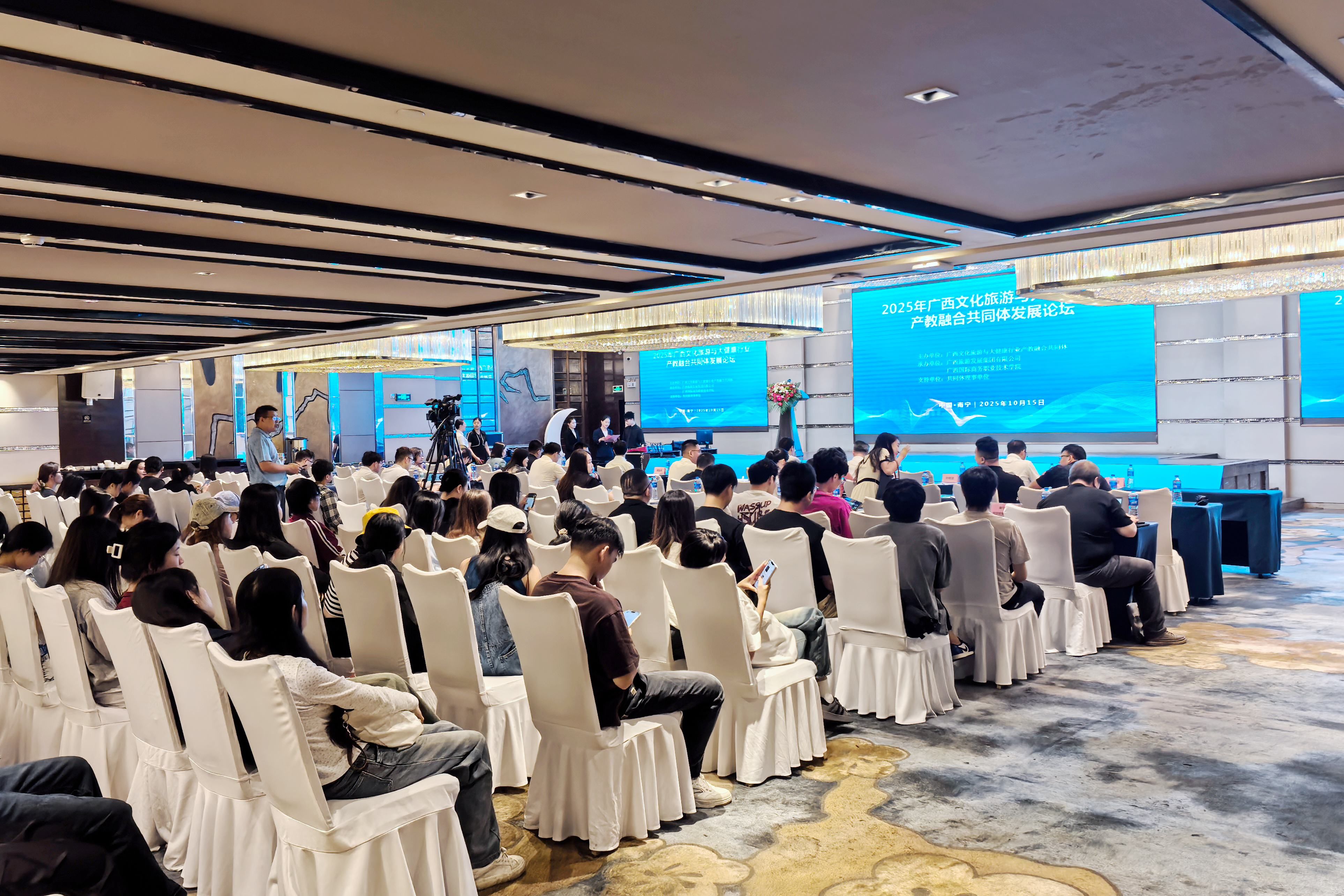 10月15日,“2025年广西文化旅游与大健康行业产教融合共同体发展论坛”在广西南宁成功举办。此次论坛由广西文化旅游与大健康行业产教融合共同体主办,广西旅游发展集团有限公司、广西国际商务职业技术学院联合承办,以“协同创新”为核心,汇聚全区院校、行业、企业等多方代表,共同探索职业教育与文旅大健康产业融合发展新路径。mg冰球突破试玩作为共同体牵头单位之一,全程深度参与论坛各项议程,mg冰球突破试玩旅游管理系副主任林轶教授受邀在圆桌论坛环节发表重要观点,为产业高质量发展提供“西大方案”。