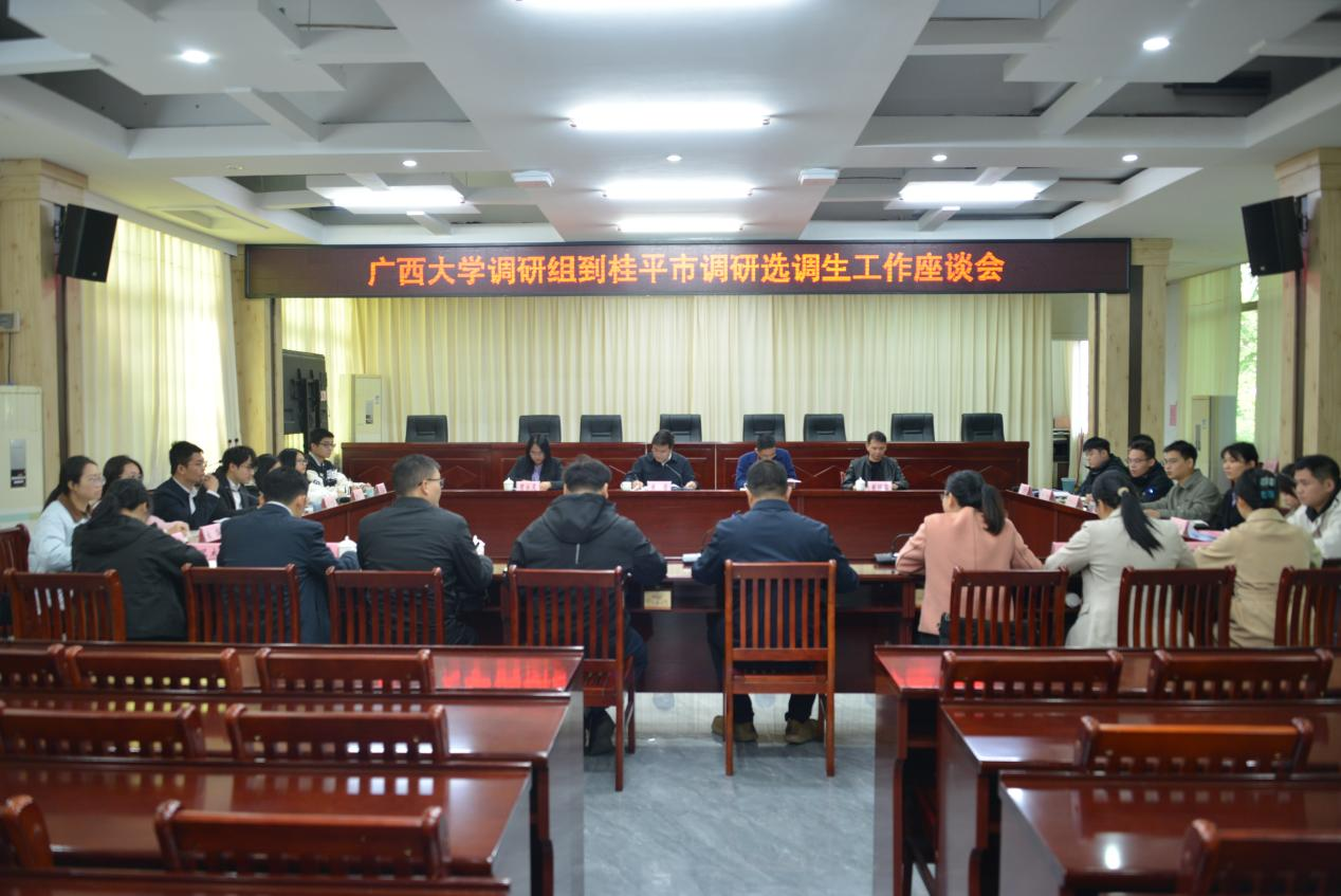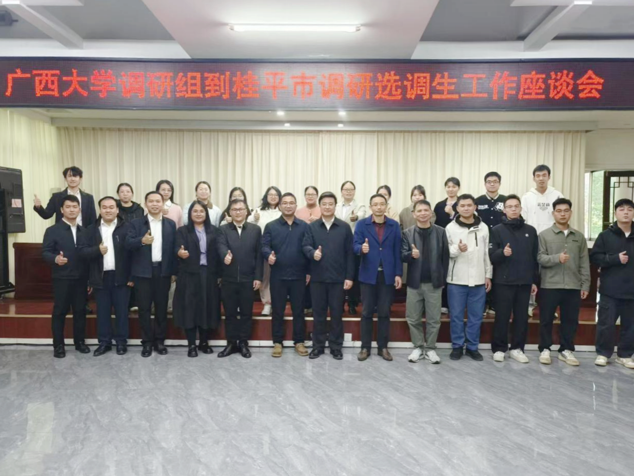 为贯彻落实学校党委关于选调生工作的决策部署,推动“君武青苗”行动,11月28日,mg冰球突破试玩党委书记黄晋带队赴桂平市开展走访调研选调生工作,院党委副书记肖克宁、校学工部(处)贾永灵、院党委组织员黄照温参加调研。桂平市政协副主席何雁会见了调研团,桂平市委组织部副部长李雄鹏出席并主持座谈会,在桂平市工作的21名选调生校友参会交流。
