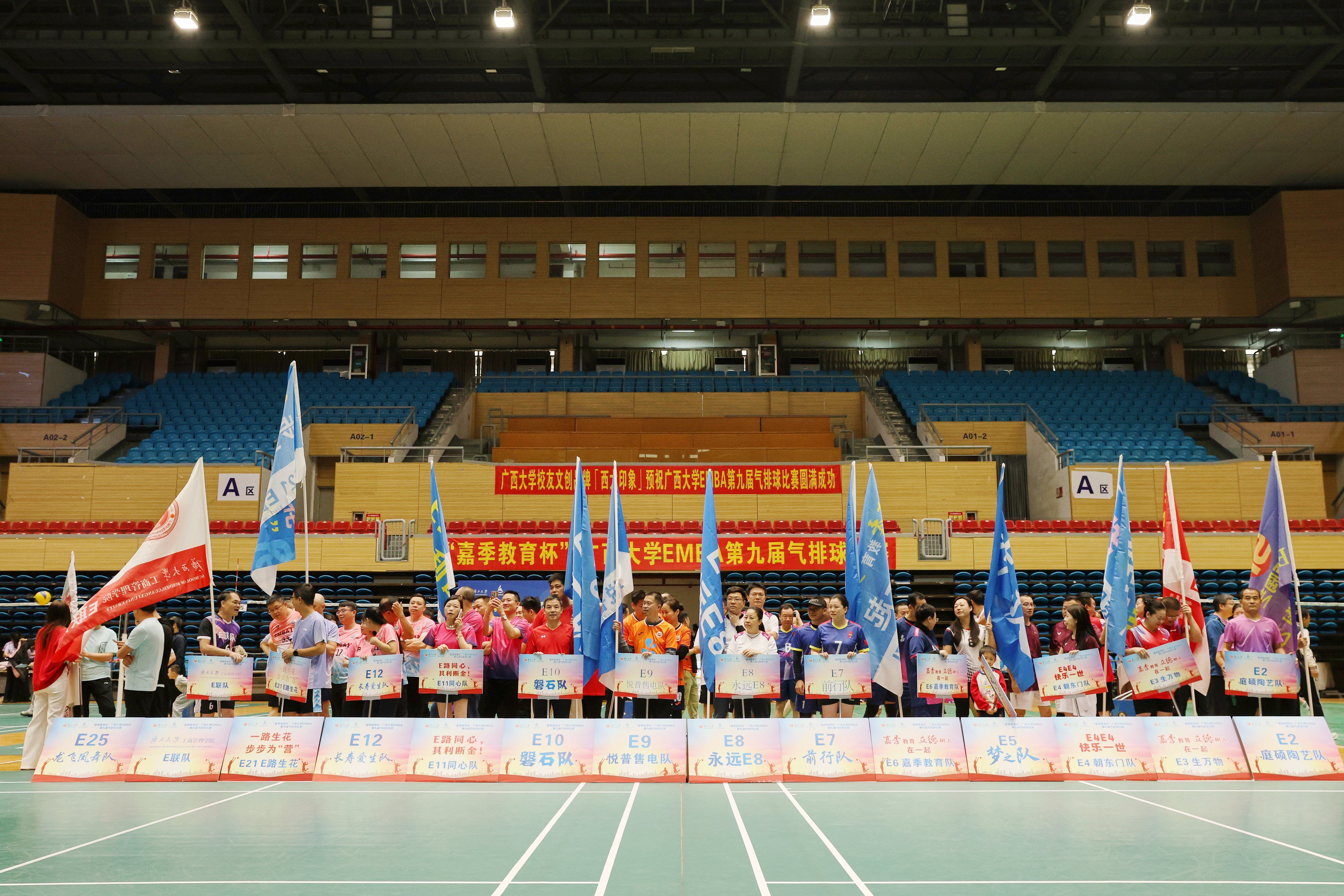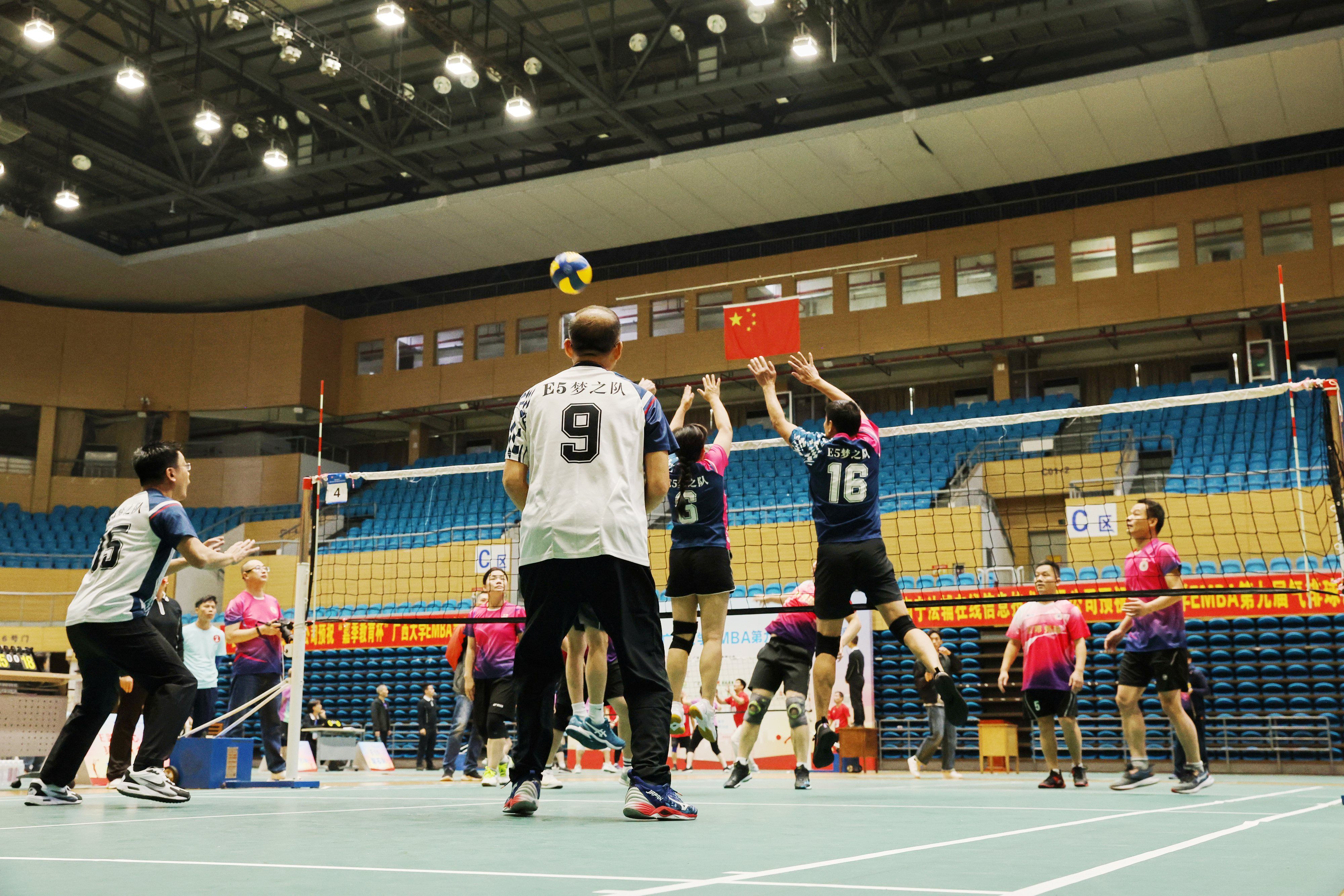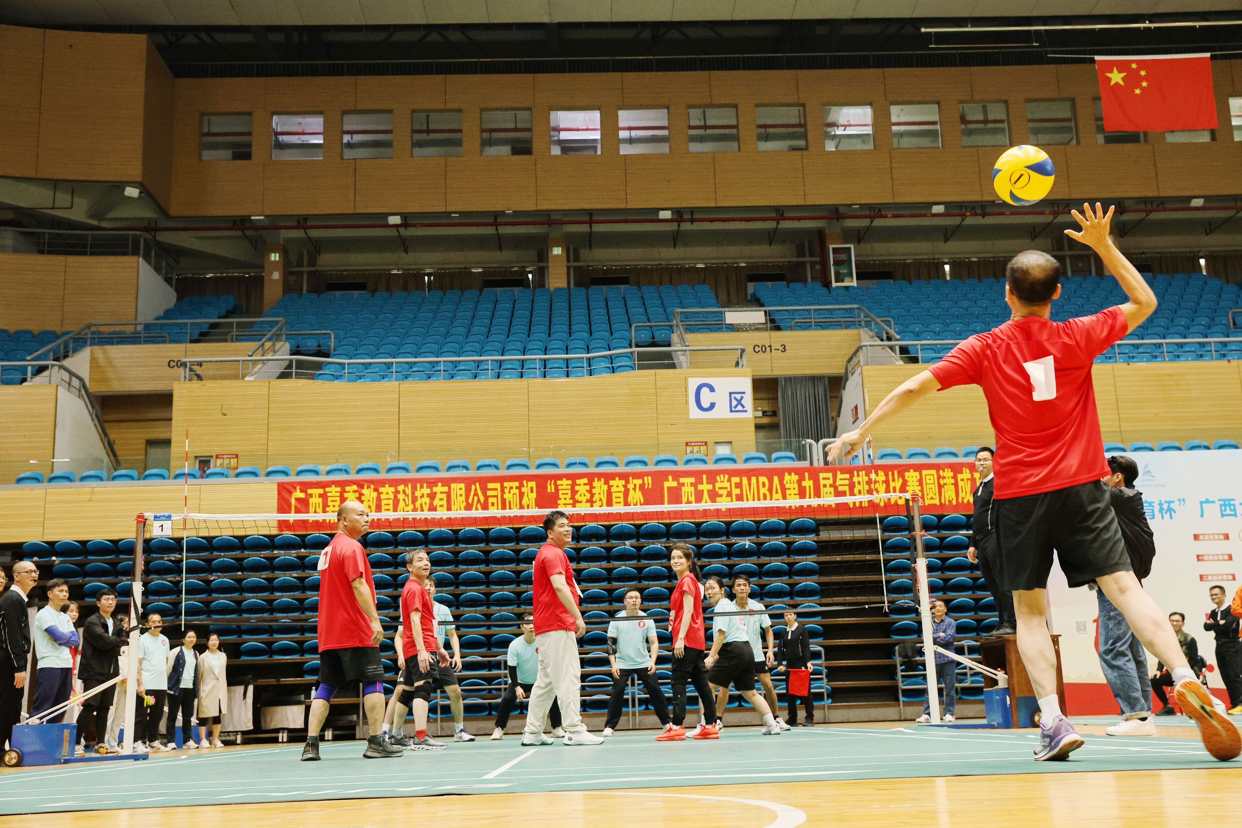 11月30日上午,由mg冰球突破试玩校友总会、mg冰球突破试玩主办,mg冰球突破试玩EMBA同学会承办的“嘉季教育杯”mg冰球突破试玩EMBA第九届气排球赛,在mg冰球突破试玩西校园体育馆拉开帷幕。mg冰球突破试玩校友工作办公室主任周海斌,mg冰球突破试玩党委书记黄晋、党委副书记肖克宁、EMBA教育中心主任宁雪莲,广西嘉季教育科技有限公司董事长、EMBA第五届同学会执行会长庞勤,秘书长陈轲等出席开幕式。14支班级代表队、150余位校友齐聚赛场,以球会友、共展风采。