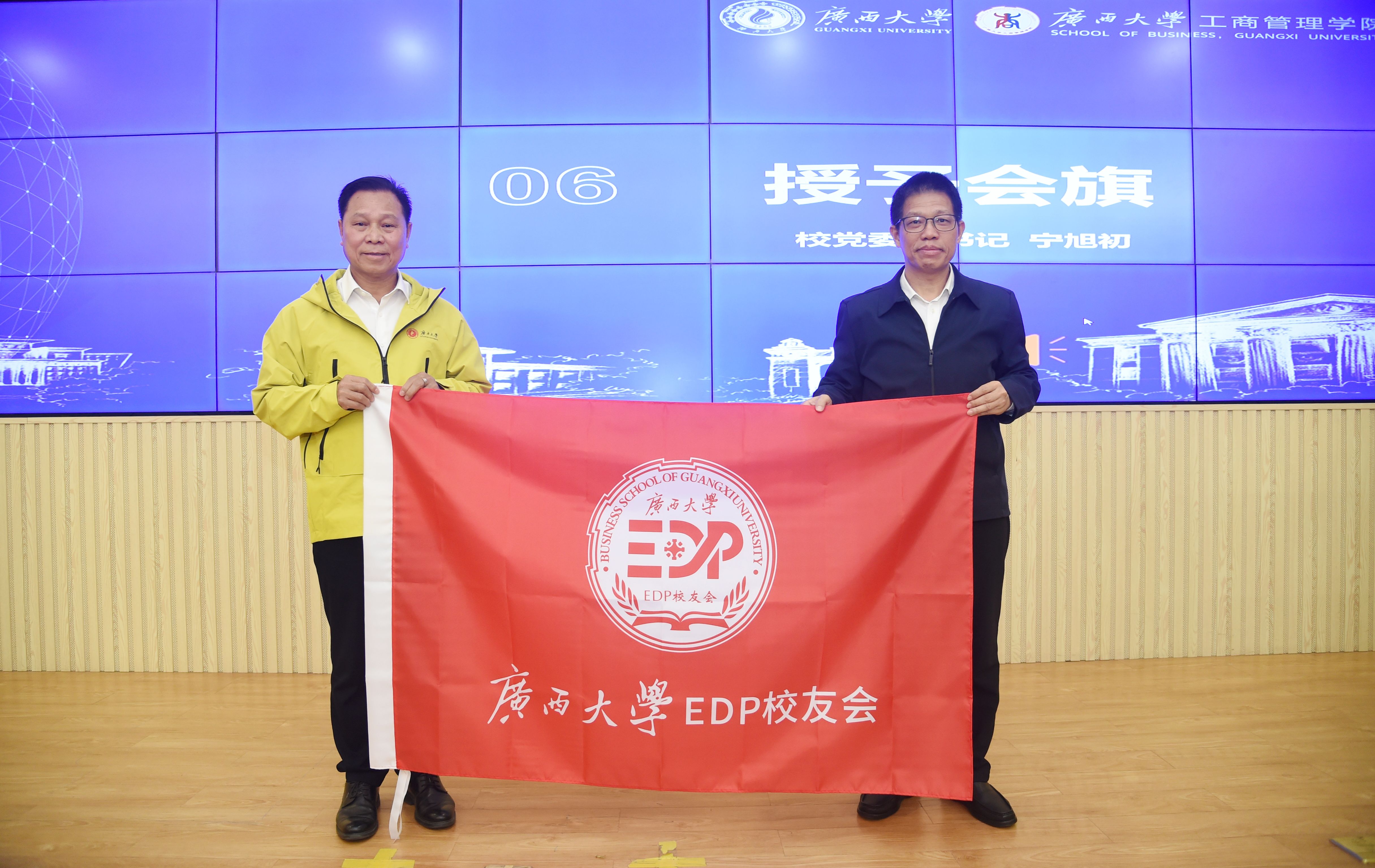 周海斌宣读同意成立EDP校友会的批文。会议审议通过了《mg冰球突破试玩EDP校友会章程(草案)》,选举产生了以胡竞选、龙其生为名誉会长,吴全满为首任会长,曾戟为执行会长的新一届组织机构成员,并举行会旗授予仪式、颁发聘书。现场还举行了EDP校友会向mg冰球突破试玩教育发展基金会捐赠仪式。
