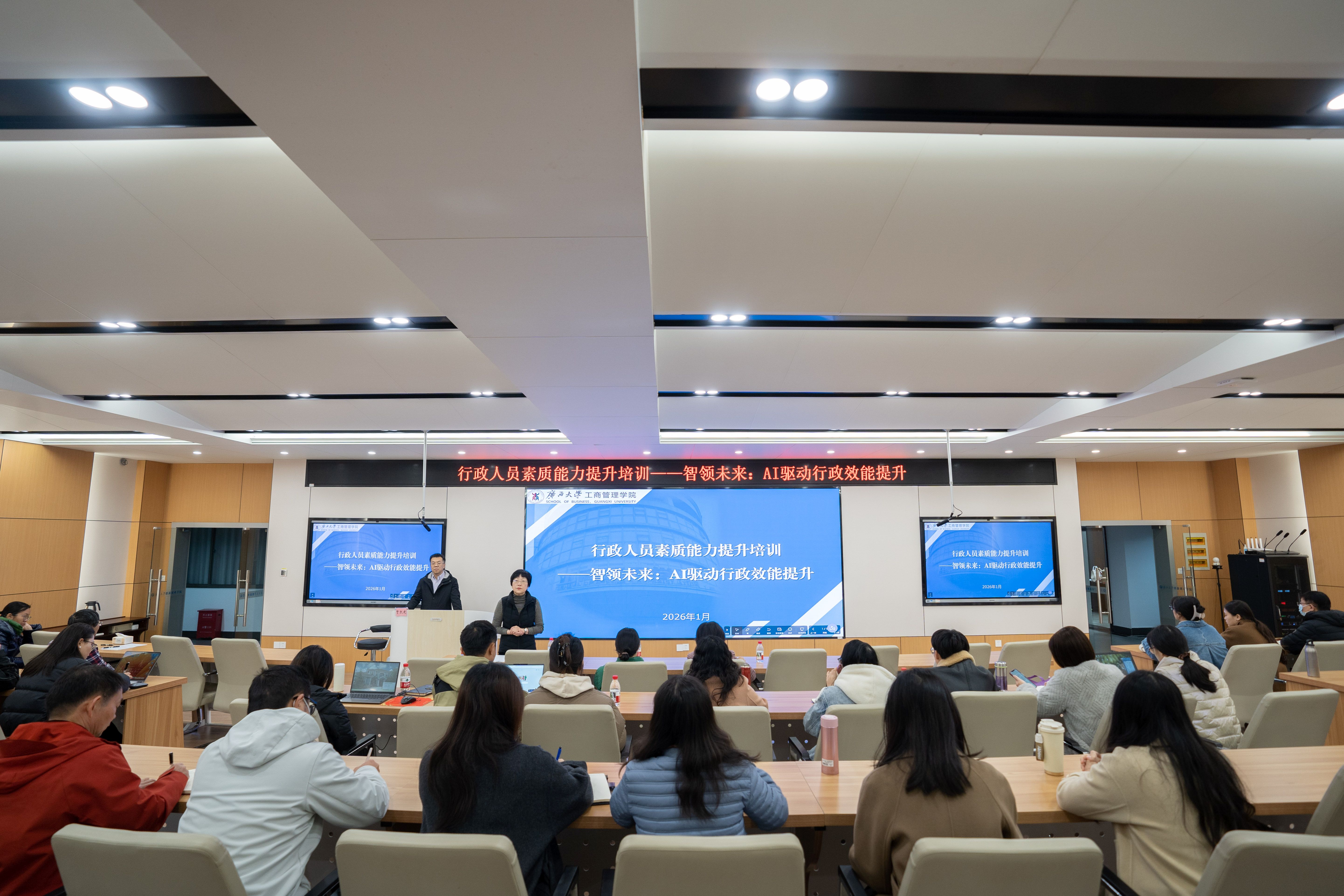 1月7日上午,学院特邀湖南师范大学教授、博士生导师贺凯健,在122教室为mg冰球官网全体行政人员带来一堂主题为《智领未来:AI驱动行政效能提升》的专题培训课。副院长廖东红出席并主持培训,全体行政人员参加培训。