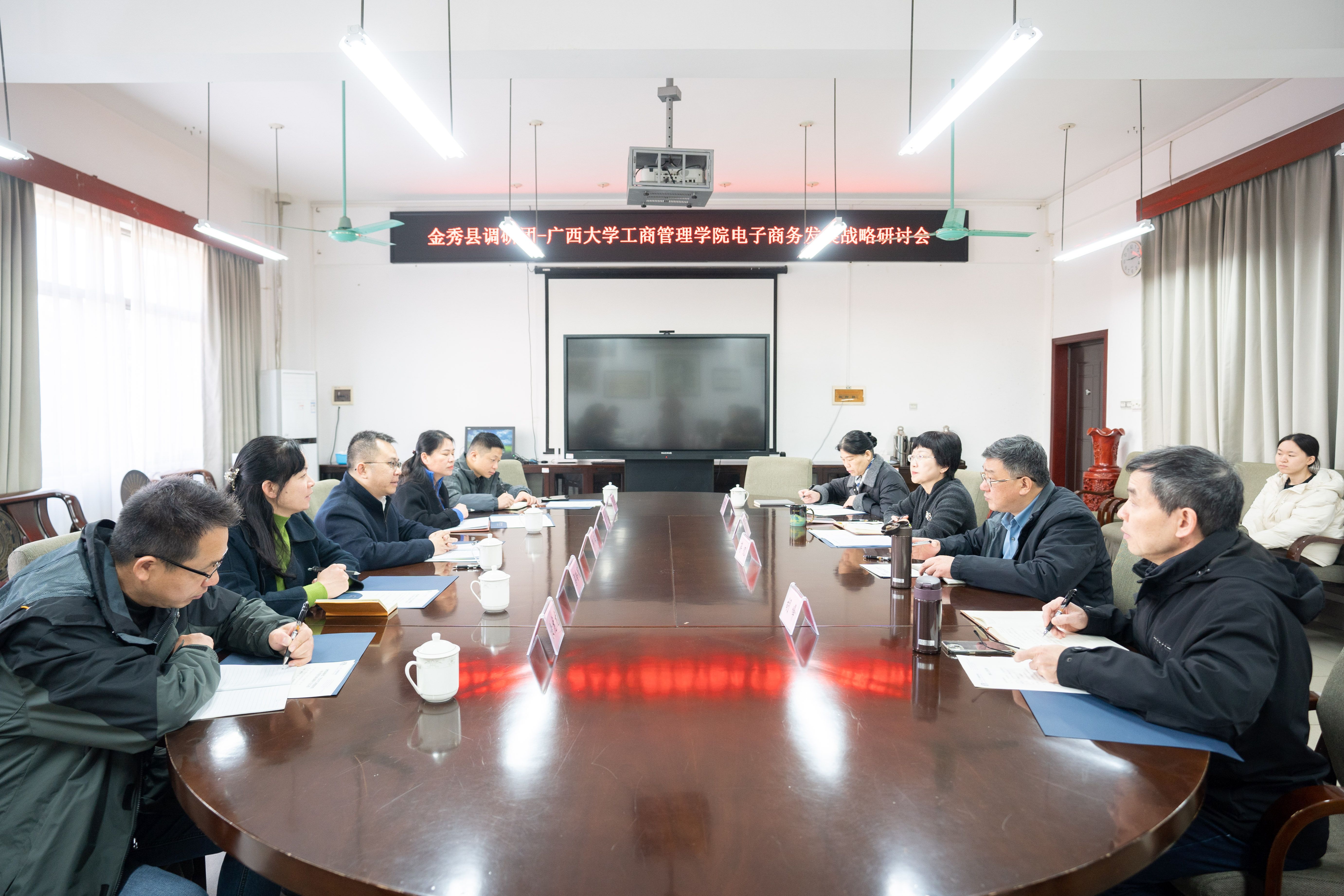 1月8日,金秀县副县长邓华率县政府相关部门负责人来mg冰球官网,就县域电商发展进行专题调研。学院副院长廖东红、院长助理蒋侃出席座谈会,相关专任教师代表参加座谈会。