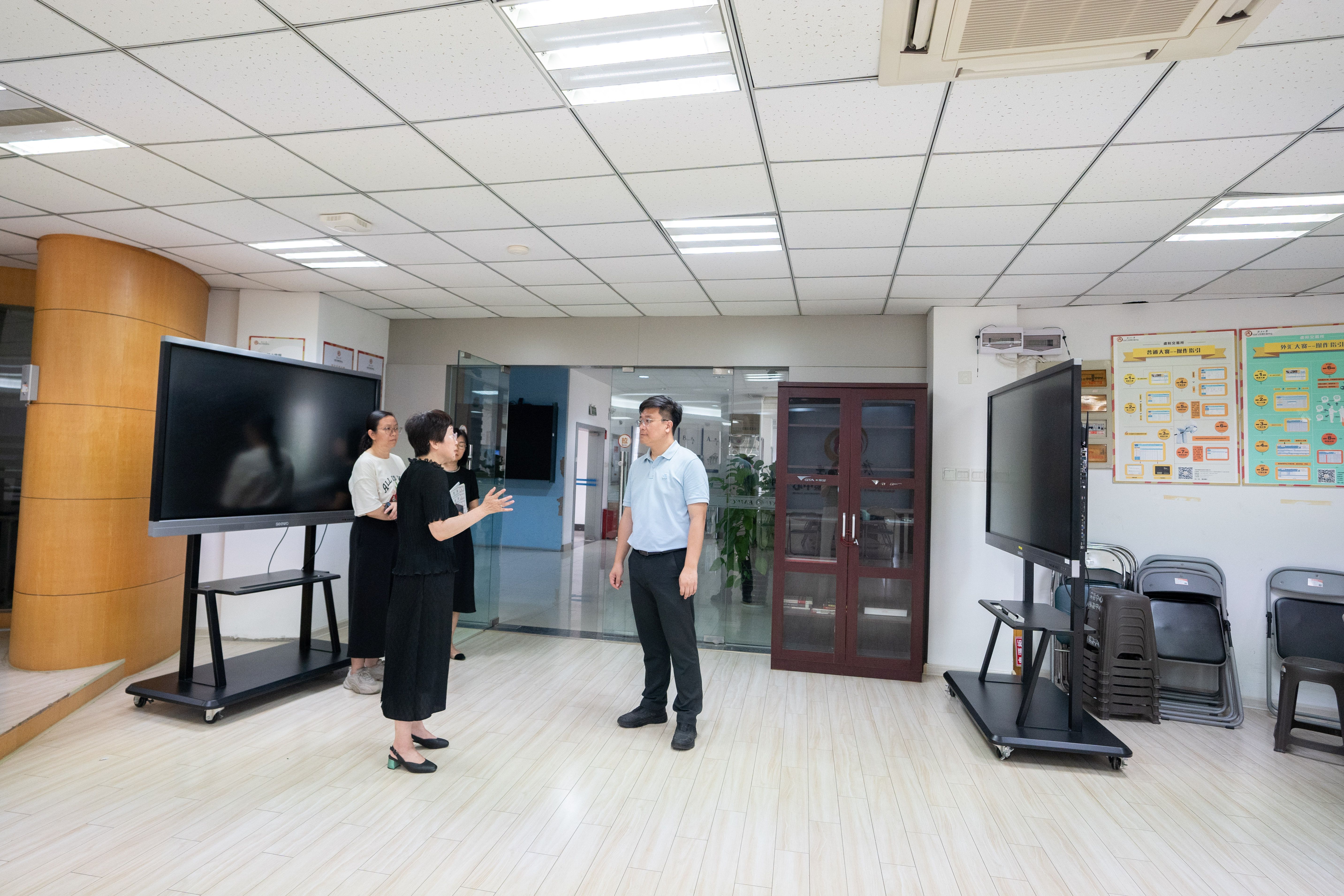 检查组一行依次对实验室、学院各办公室、教师工作间、学生自习室、研讨室、会议室、文献库等场所进行了巡查,重点检查了消防安全设施是否完好有效、应急通道是否畅通无阻、各场所的门窗锁具是否牢固、用电设备是否规范使用等关键环节逐一排查。每到一处,检查组都仔细查看现场环境,详细询问日常安全管理措施的落实情况,并对发现的问题进行提出了完善意见,要求各相关部门立即整改。
