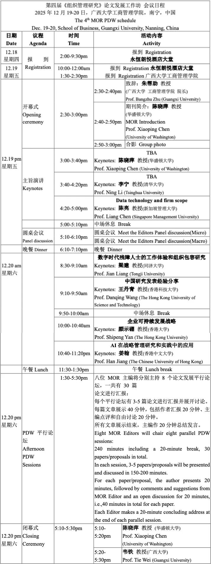 附表:PDW平行论坛安排