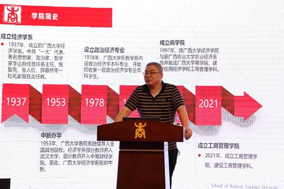 紧接着,院长为2023级新生上开学第一课。朱帮助院长围绕“学院历史与发展”向同学们展示mg冰球突破试玩的过去、现在和未来。结合学院特色、工商管理专业的发展趋势,向新生们指明了在学院学习期间发展的道路。
