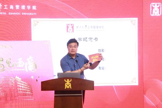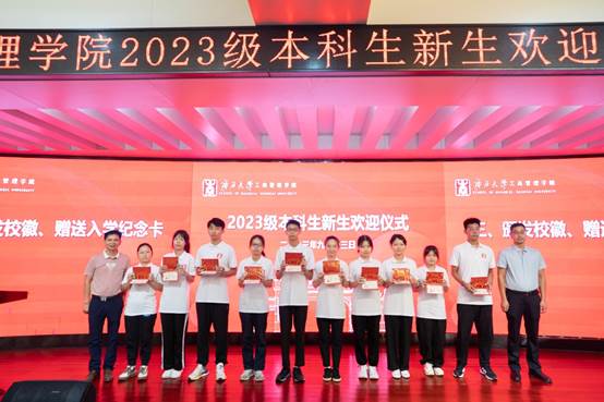 随后,学院领导、老师们向2023级新生代表现场赠予mg冰球突破试玩校徽以及入学纪念卡。为表达对新生们的热烈欢迎,学院特别为每一位新生都订制了精美的“遇见西商”入学纪念卡。每张纪念卡上记录着新生的姓名、专业、学号,以及一张入学时的相片,为新生留下深刻美好的入学回忆。在全体新生的见证下,院领导为新生代表赠送校徽、入学纪念卡,意味着他们已成为光荣的“西商人”,是他们永不褪色的标签,传递了老师们对新生的殷切希望、憧憬与希冀。