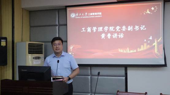 他主要对第三届学生干部提出工作上的要求:一是在政治思想引领工作方面再下苦功,引导同学们积极参与政治学习,在政治学习中活起来;二是在学风建设工作方面再下苦功,提倡考研风气,多支持、多组织同学们报名学术类竞赛;三是在校园文化活动上面再下苦功,弘扬正能量,打造出属于学院的文体活动品牌,带动同学们德智体美劳全面发展。