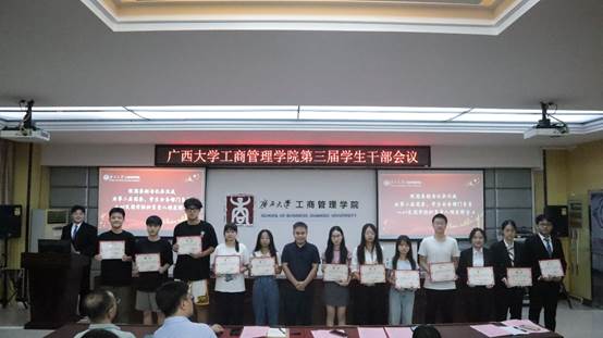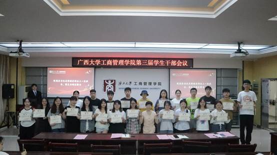 为表彰上一届团学组织干部的工作,增强新一届学生干部的凝聚力,进一步推动学院学生工作管理成效。9月19日下午3点,mg冰球突破试玩于学院124教室,召开第三届全体学生干部会议。院党委副书记黄晋、院团委书记马丽娟、院团委副书记岑汉成、院学生辅导员莫秀德、郁文丹出席本次会议。