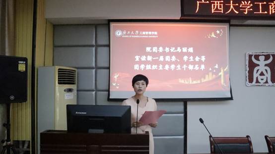 (马丽娟老师宣读新一届团学组织学生干部任职名单)