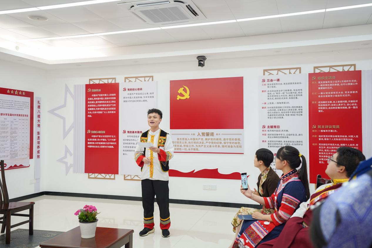 在交流过程中,同学们还表演了才艺,品尝了广西“三月三”传统美食糯米饭,现场其乐融融,气氛热烈。近2个小时的自由畅聊,传递出师生们民族大团结一家亲的良好氛围。同学们纷纷表示,要做民族团结的传播者和践行者,与各民族同学共同学习、共同进步,为铸牢中华民族共同体意识,弘扬和传承少数民族优秀传统文化贡献力量。