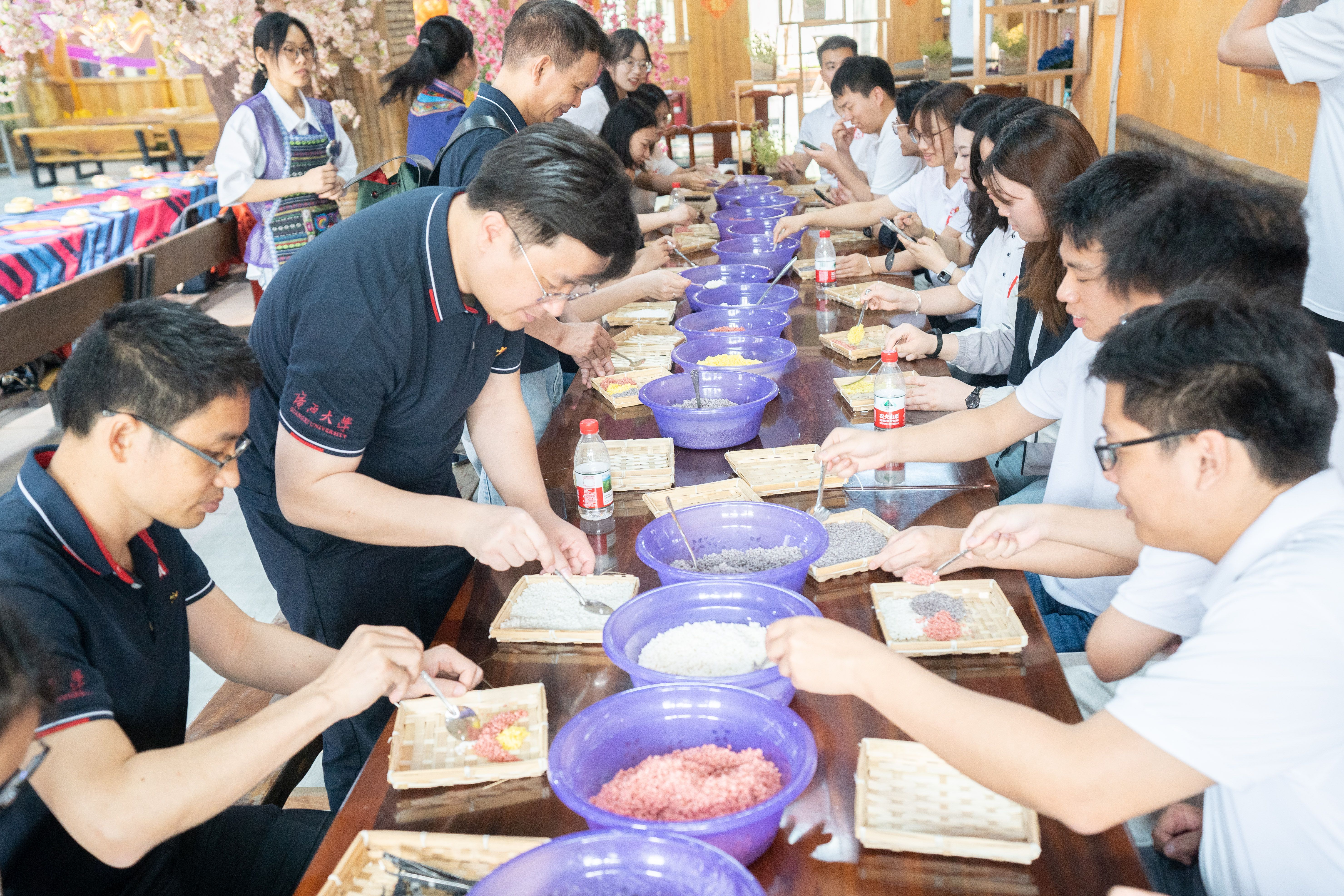 3月28日,mg冰球突破试玩组织师生前往武鸣五彩壮乡文化产业园,开展了一场别开生面的广西三月三民族文化研学活动。学院党委书记黄晋、副书记肖克宁与师生们一同参与活动,深入体验民俗风情,传承民族文化,铸牢中华民族共同体意识。