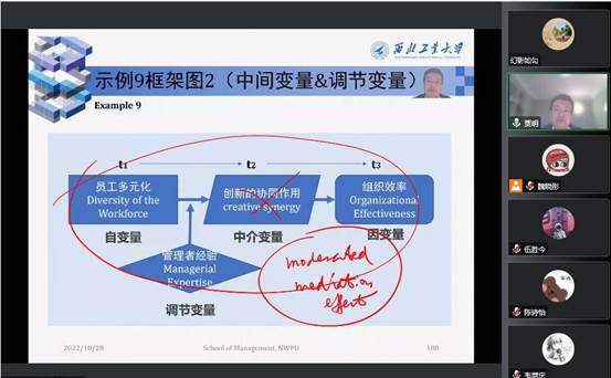 西北工业大学管理学院贾明教授应邀分别于2022年10月21日、10月28日为mg冰球官网2022级硕博研究生和其他师生进行为期2天的《会计与组织管理实证研究方法》系列课程授课。此次课程以《管理研究的思维方式》为主题,主要通过“腾讯会议”以学术讲座形式在线上开展。