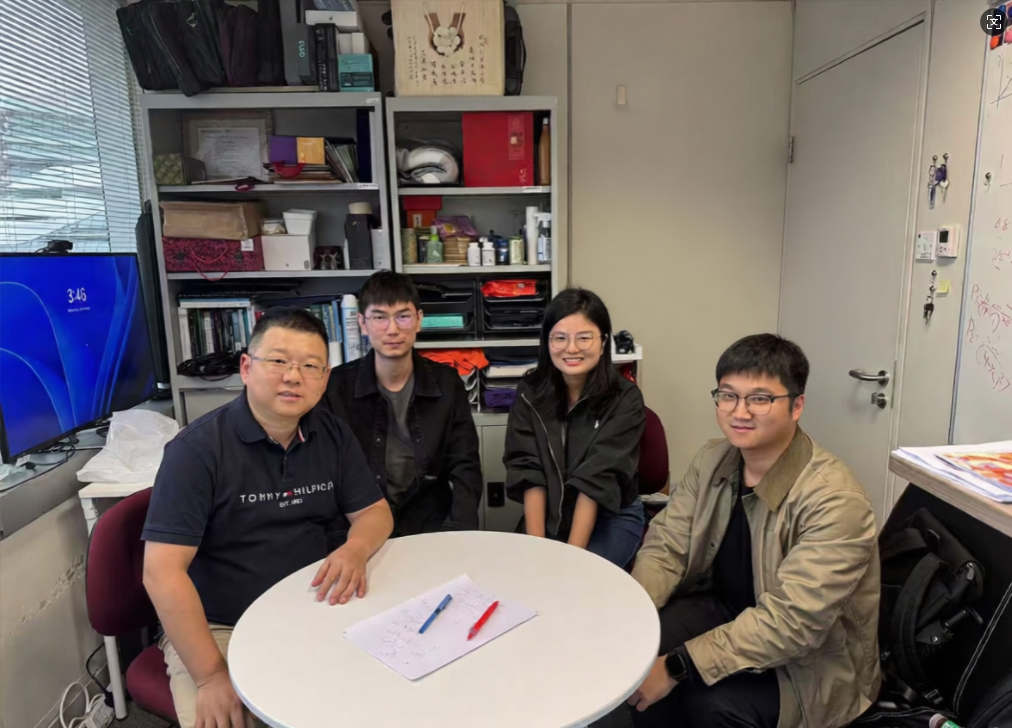王春燕、陈港、宋泽同学与香港理工大学合作导师合影