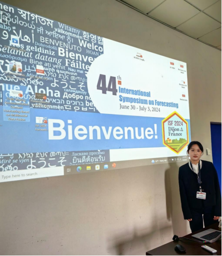 2024年6月30日至7月3日,mg冰球突破试玩学术型硕士研究生叶钰玲在胡明明副教授的带领下,参加了在法国第戎举办的第44届国际预测研讨会。
