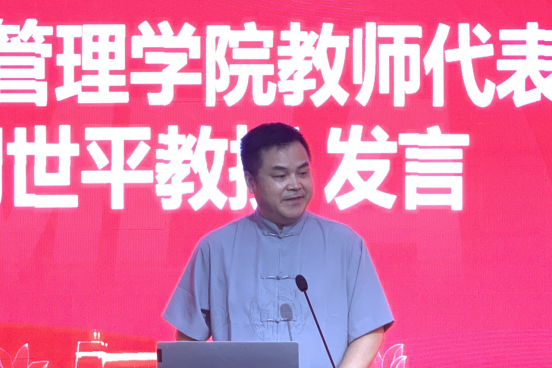 MBA教师代表阎世平教授在发言中希望毕业生们择高而立,树立远大的理想和人生目标;不断探求新知、追求真理,保持对知识的渴望;把思考当成一种习惯,学无止境,永葆思想的活力。无论走到哪里,希望大家始终保持谦虚、勤奋和创新的精神。