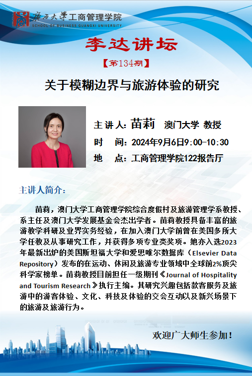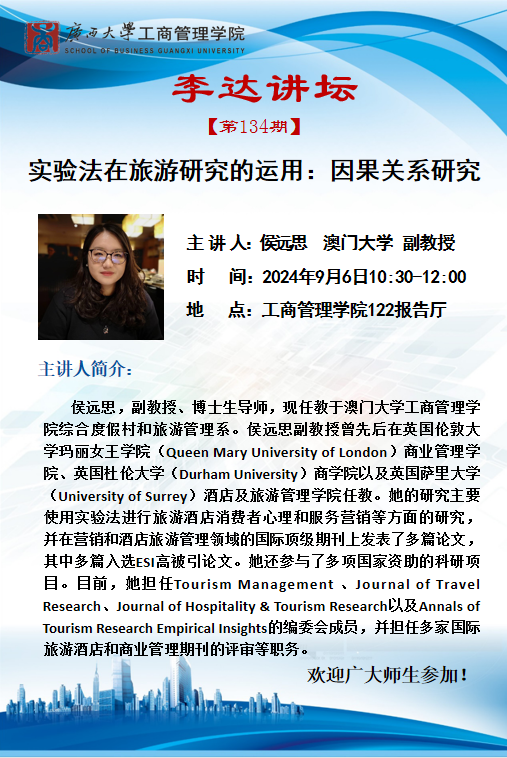 李达讲坛第134期|关于模糊边界与旅游体验的研究、实验法在旅游研究的运用:因果关系研究