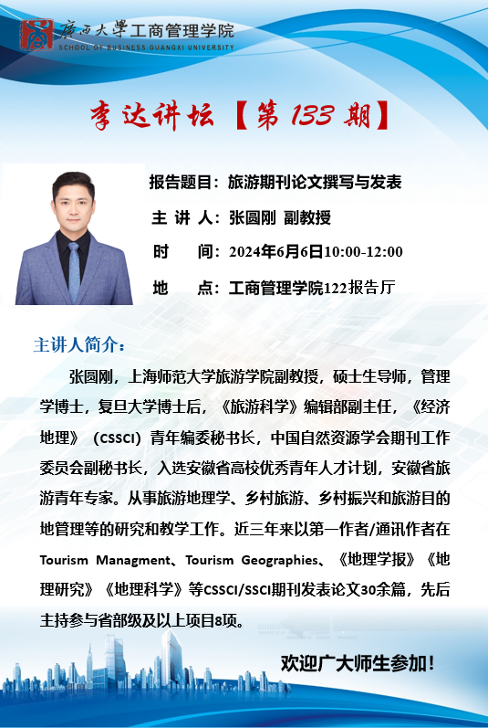 李达讲坛第133期|旅游期刊论文撰写与发表