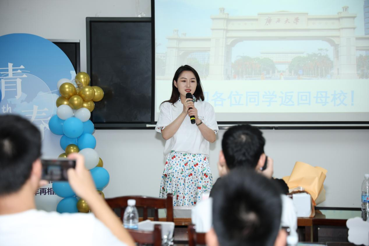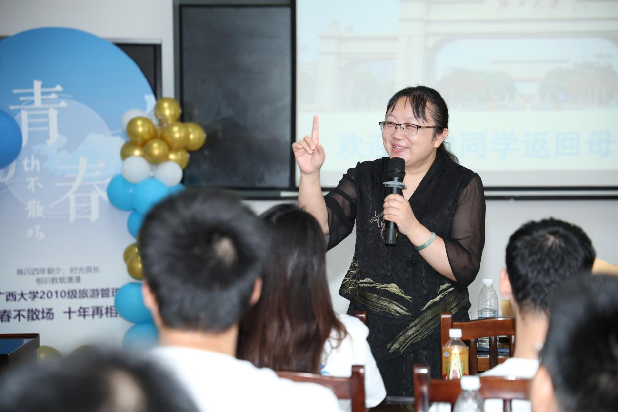在学院的教室里,校友们围坐一堂,召开了具有特殊意义的主题班会。学院副院长刘民坤向校友们致以最诚挚的祝福,对广大校友在各行各业服务党和国家事业发展取得的成绩表示衷心地祝贺。旅游管理系主任、2010级旅游管理专业班主任郭峦向同学们介绍了母校及学院的发展近况,希望同学们珍惜同窗情谊,增进联系,携手共进。