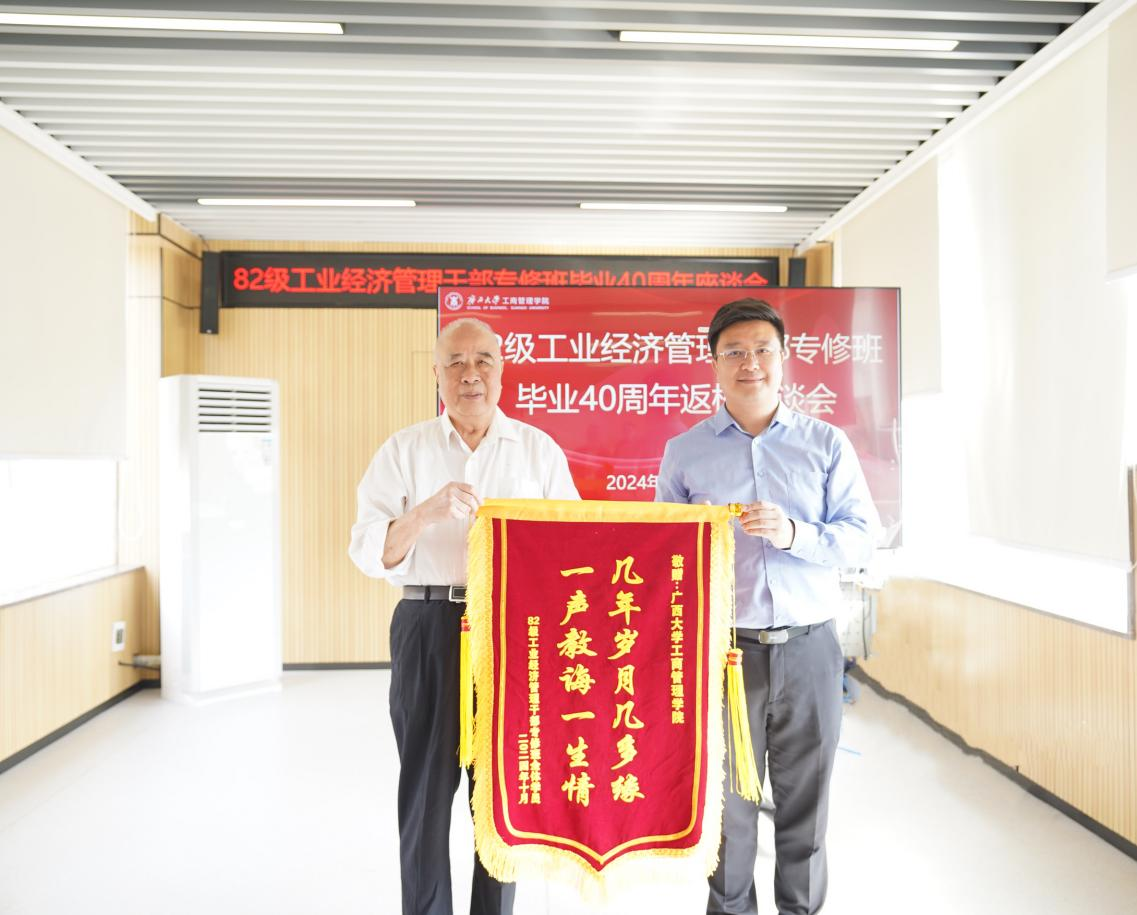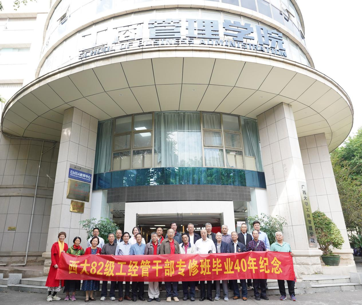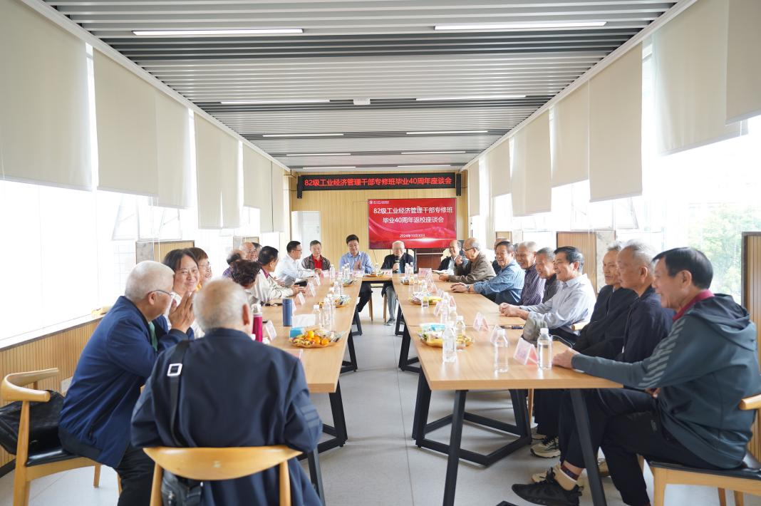 忆往昔青春岁月,看今朝再续前缘。10月30日,82级工业经济管理干部专修班毕业40周年返校座谈会在mg冰球突破试玩500教室举行。学院党委书记黄晋,原教研主任左昌鸿老师、原英语课祝远德老师、李立民老师和学生代表等30余人参加座谈会。校友工作与政企服务办公室主任覃朝勇主持座谈会。