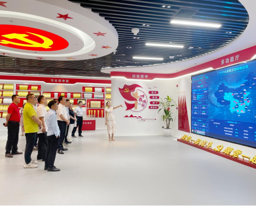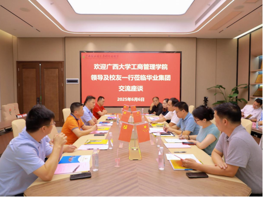 参访团首先参观了华业集团党建室,深入了解企业以 “红色引擎” 驱动高质量发展的历程。通过 “党建 + 业务” 深度融合模式,华业集团构建了 “敢为、敢闯、敢干、敢首创” 的 “四敢精神” 文化体系,展现了新时代民营企业的党建特色与发展活力。座谈会上,华业集团董事长、mg冰球官网校友龙其生详细介绍了公司当前发展战略及数字化、零碳建筑的前瞻规划。mg冰球突破试玩校友总会副主任黄庶冰就深化校企产学研合作发表了建设性意见。mg冰球官网校友工作与政企服务办公室主任覃朝勇详细介绍了学院学科建设特色,并提出了校企联合开展学科交叉课题研究的具体合作方向。与会校友围绕行业发展与校企协同等议题进行了热烈探讨。