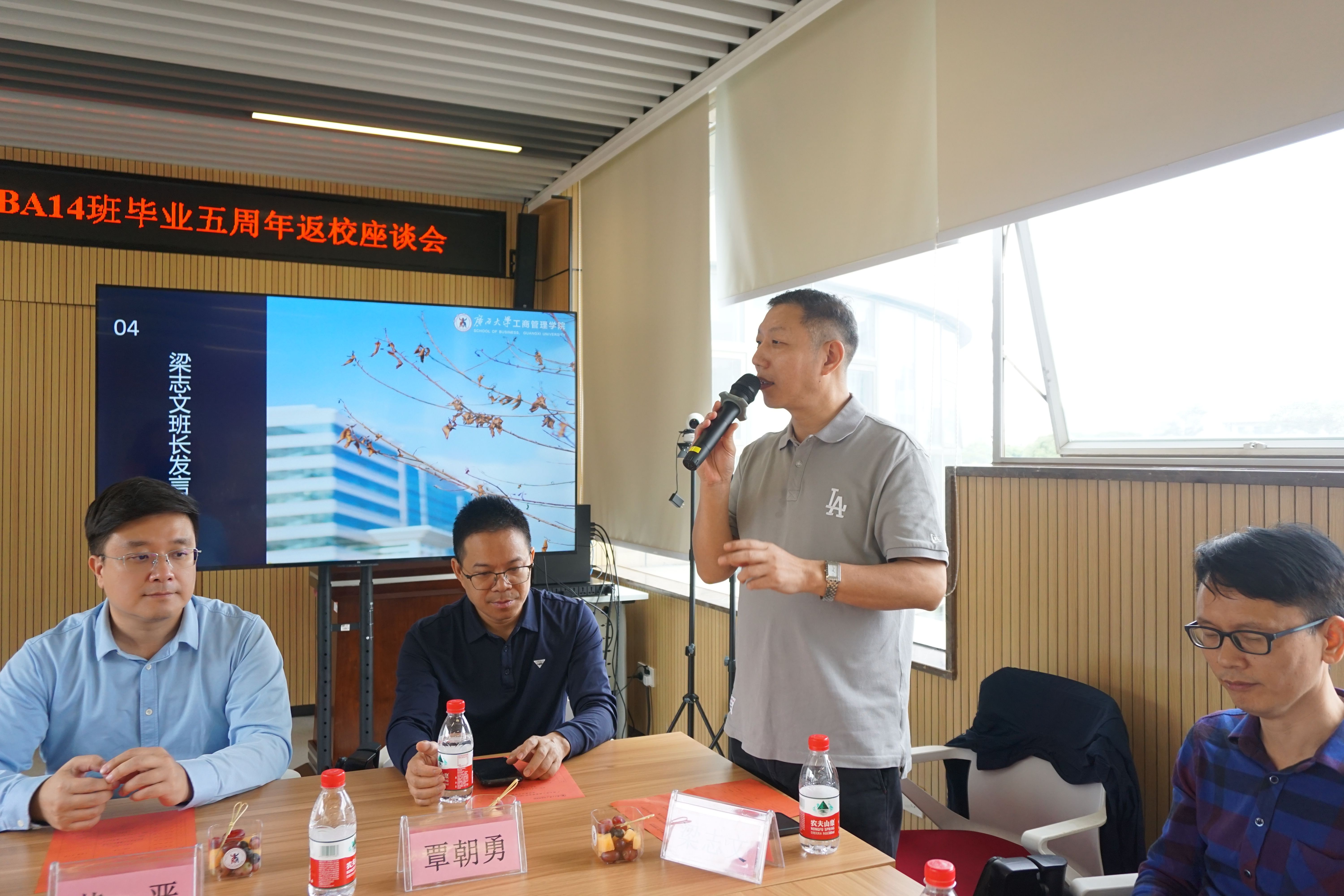 EMBA14班班长梁志文代表全班同学发言,他深情回顾了在校学习的美好时光,感恩母校与老师的培育,并分享了五年来班级同学在各自领域取得的进步与发展。随后的自由分享环节将座谈推向高潮,校友们逐一发言,结合自身行业实践,畅谈EMBA学习对事业与人生的深远影响,现场掌声不断,笑语盈盈。
