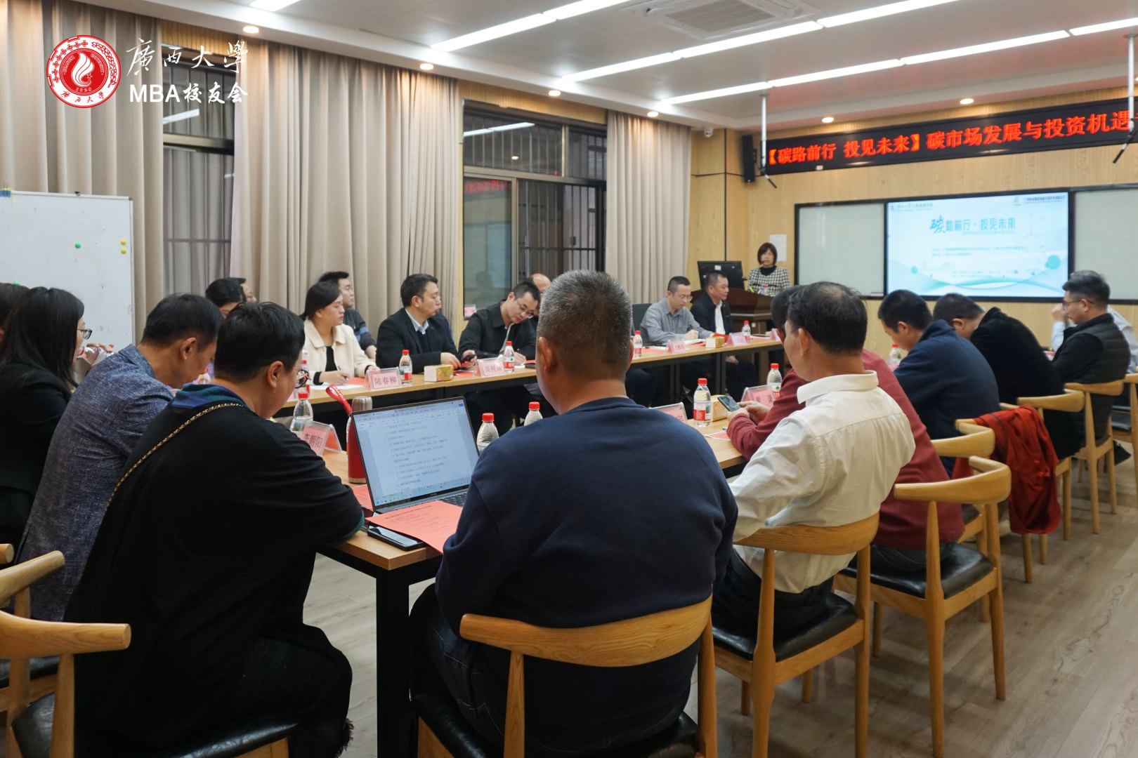 2026年1月17日下午,mg冰球官网联合mg冰球突破试玩MBA校友会和广西林业集团低碳生态技术有限公司,在学院509C教室成功举办“碳路前行·投见未来”碳市场发展与投资机遇专题研讨会。本次研讨会旨在汇聚校友智慧,共探“双碳”战略下的市场趋势与投资路径,近30名学院教师、校友及企业家代表参加。