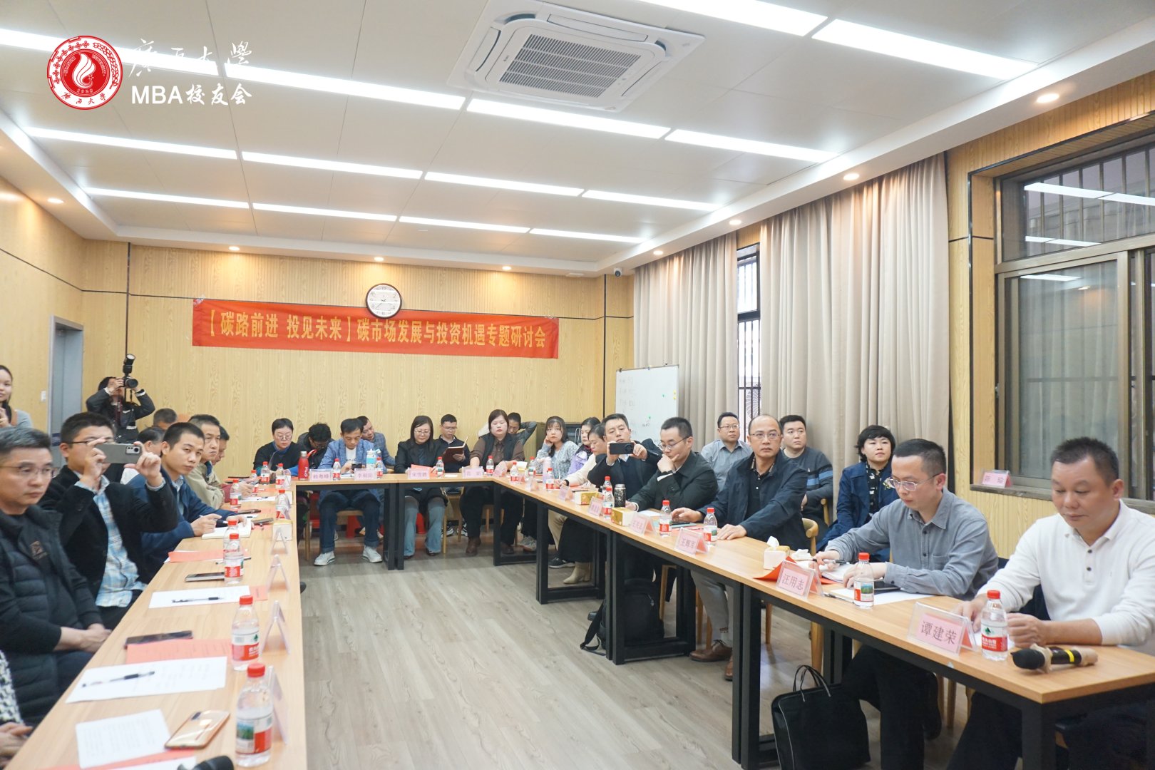 研讨环节气氛热烈,与会的MBA、EMBA、EDP校友分别围绕碳资产管理、区域项目开发、绿色金融创新等议题展开深入交流。大家一致认为,本次研讨会不仅增强了校友对“双碳”政策的理解,也为后续合作奠定了坚实基础。
