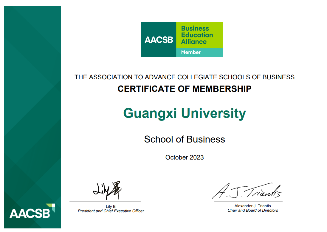 2023年10月7日,国际商学院协会(The Association to Advance Collegiate Schools of Business,AACSB)正式接纳mg冰球官网成为会员。