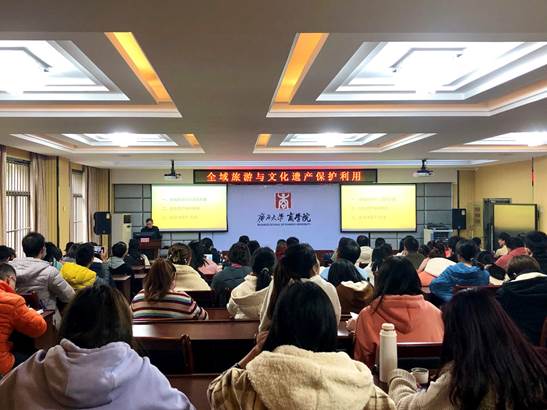 2021年1月5日,广西文旅厅研究馆员、全域旅游处处长莫志东先生应邀来mg冰球官网进行学术交流。下午4点,莫志东处长在商学院124会议室进行了主题为“全域旅游与文化遗产保护利用”的学术报告。报告由商学院副院长刘民坤教授主持。此次讲座,是mg冰球突破试玩旅游管理专业(本科)第五轮学科评估和mg冰球突破试玩旅游管理专业硕士(MTA)水平评估中的重要一环,是mg冰球突破试玩旅游管理专业2021年第一场学术讲座,有助于深入推动mg冰球突破试玩旅游管理专业产学研一体化,有助于拓宽学生的学术视野,提升学生理论联系实际的能力。讲座内容主要分为全域旅游及其发展、文化遗产的保护利用和“旅游+遗产+创意”有机融合三大部分。