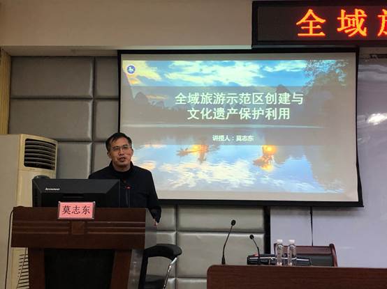 第一部分,全域旅游及其发展。首先,什么是全域旅游?十多年来,国内多省对全域旅游的概念和标准界定进行了许多探讨实践,最终理念大同小异。莫志东处长援引了浙江省文旅厅副厅长杨建武对全域旅游的八字归纳:“处处、时时、行行、人人”。处处,即处处皆风景,强调大众旅游时代游客不再仅以特定景区作为目的地,而是将整个城市或区域作为一体的目的地。时时,即时时有服务,体现了“线上线下、随时随地”逐渐成为休闲时代对旅游服务的新要求。行行,即三大产业、所有行业都可以做旅游,不仅农场、茶园、峡谷、水库可以变景区,工厂、社区和高速公路服务区也可以变景区。人人,即人人共建共享:追求小康生活、打造全域旅游景区,人人都要提高素质、贡献力量。全域旅游作为一种新的旅游发展模式,是从门票经济到产业经济、从粗放低效方式到精细高效方式、从封闭的旅游自循环到开放的“旅游+”的转变。莫处长借由阳澄湖高速公路服务区变景区的成功案例,指出我们一定要转变思维,并非历史悠久的自然资源和人文资源才能形成景区,我们可以因地制宜、“无中生有”,充分利用各种资源人为地建设富有文化冲击力和视觉享受的新景区,以人流物流车流带动地方旅游业发展,其产生的经济效益也将是不可估量的。