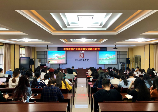 讲座内容主要分为三大部分。第一,文旅融合的发展历程。在这一部分,魏教授提出文化与旅游相结合在市场实践中已经有较长时间的积累,目前也是国家推动高质量经济发展的具体导向之一。第二,旅游业高质量发展的动态演进过程。魏教授概括介绍了文旅融合与旅游产业高质量发展的主体、客体两个层面。主体层面即旅游企业在政策指导下,通过文化创意和技术创新,提高产品附加值;客体层面即旅游企业根据市场需求变化,满足旅游者美好旅游体验需求。从主客体两个层面出发,从路径依赖到路径突破,再到路径发散,最终完成路径优化,实现中国旅游产业高质量发展目标。第三,体验旅游时代如何打破传统观光旅游经济发展的路径依赖和低端锁定问题。欲改变消费路径依赖,从微观到宏观需要解决门票经济、意识局限、制度保持三大困境。这需要我们掌握文化创意视角、解决硬件短板,处理好旅游产业发展过程中质量、效率和动力三者的关系问题,形成政府与市场的主客协同和系统推动效应,而创新又是实现这一目标的重要手段。此外,魏教授还针对政府部门提出了鼓励新型旅游、完善旅游公共服务体系等政策建议。