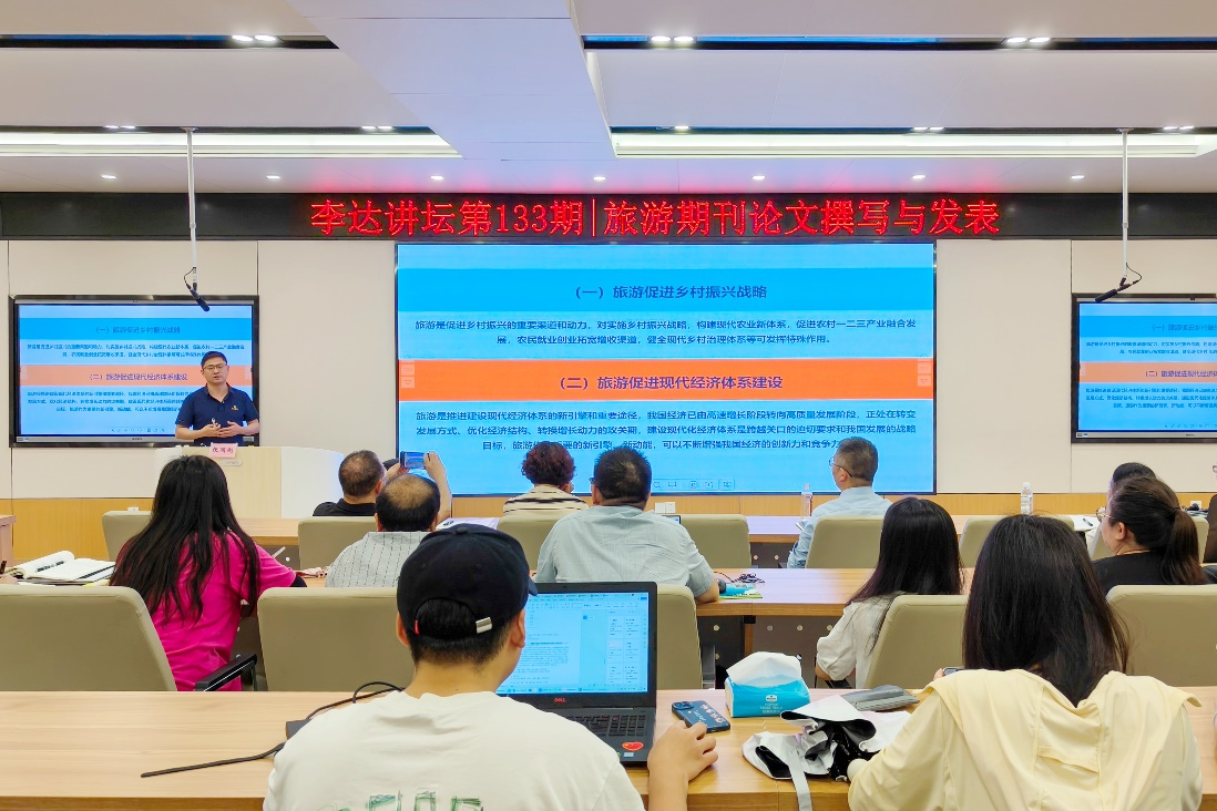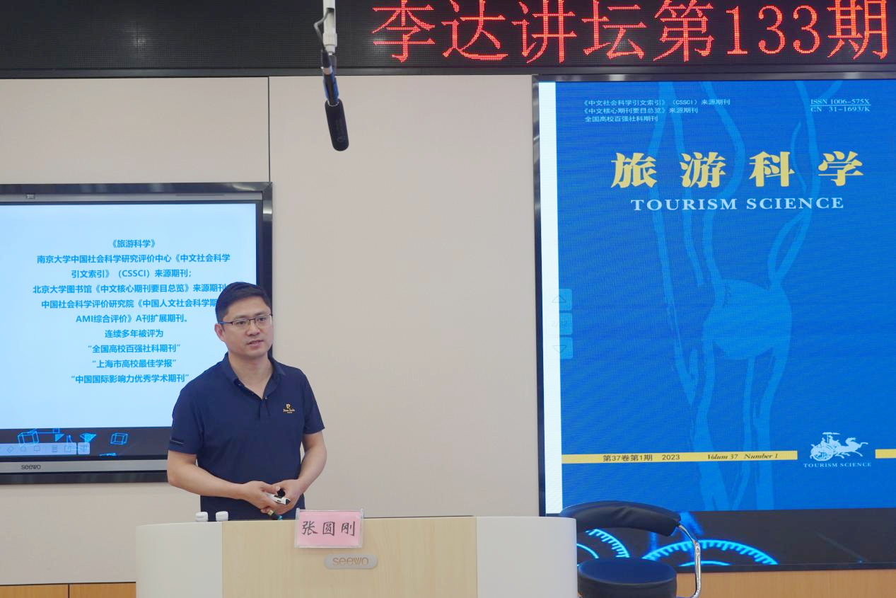 6月6日上午,上海师范大学旅游学院张圆刚副教授受邀做客mg冰球官网第133期“李达讲坛”,以“旅游期刊论文撰写与发表”为题在学院122报告厅为mg冰球官网师生作学术报告。讲坛由学院副院长刘民坤主持,学院旅游管理系专任教师和研究生到场学习交流。