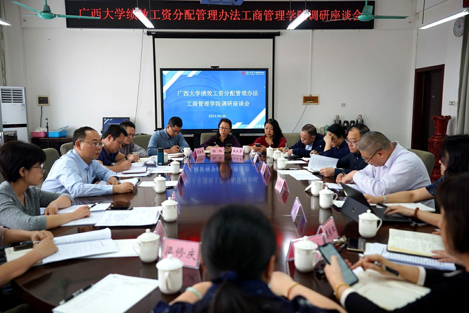 为进一步深化我校绩效管理改革,充分听取和采纳二级学院职工意见建议,4月26日下午,学校人力资源处处长于文进带领副处长周海斌、吴彤,薪酬管理岗张华胜、聘用考核岗陈雪华一行5人走进mg冰球突破试玩,就新修订的绩效工资分配管理办法征求意见,开展座谈交流。mg冰球官网党委书记罗诚、院长朱帮助、副院长朱少英、申韬、刘民坤、廖东红,工会主席叶映和部分教代会代表参加了座谈会。